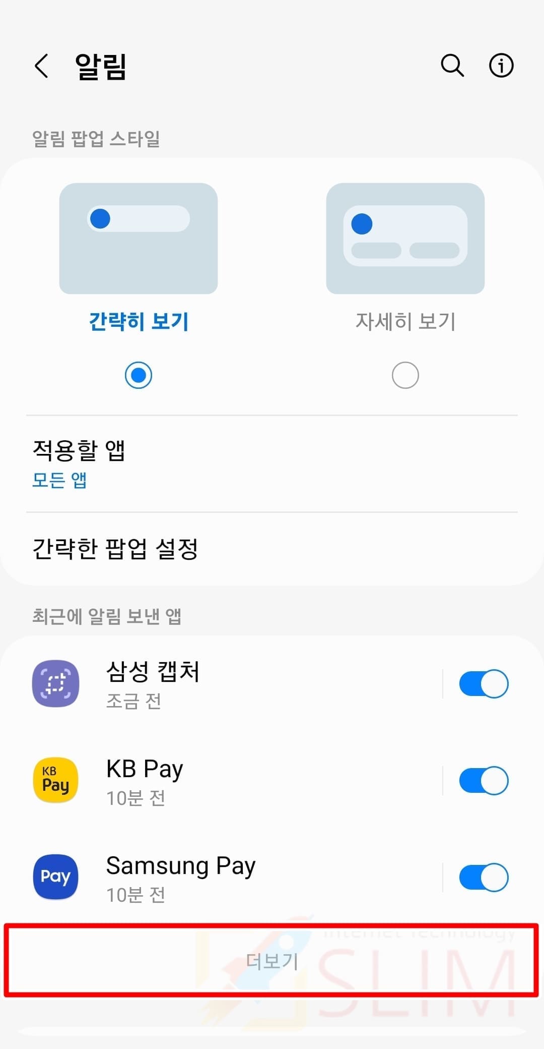 2. 최근에 알림 보낸 앱 아래 더보기를 누릅니다.