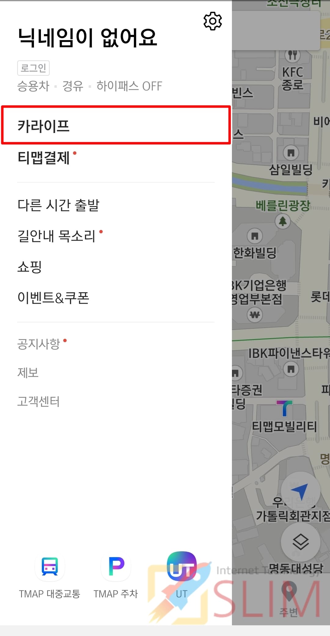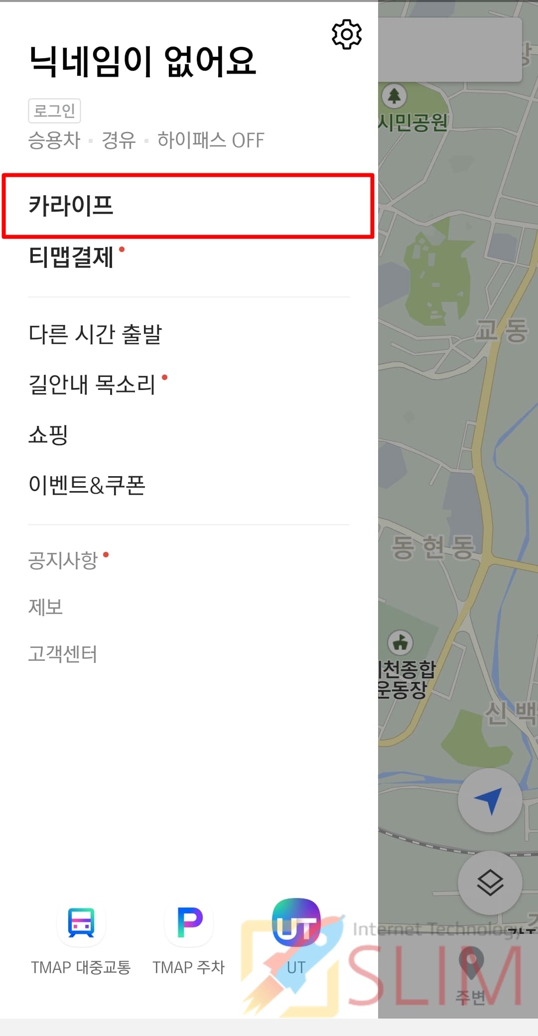 7. 티맵에서 다시 더보기 버튼을 눌러 카라이프로 들어갑니다.