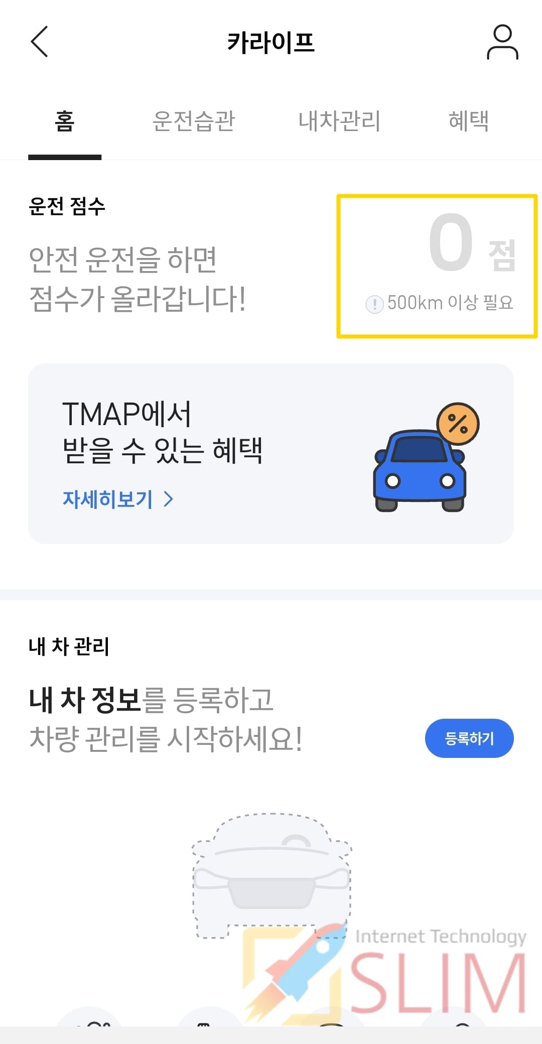 네비게이션 어플인 티맵(TMAP)에서는 나의 운전습관을 토대로 운전점수를 매겨주는데 일정 KM를 운행하고 일정 점수를 넘으면 자동차 보험료를 최대 11% 할인 받을 수 있습니다. 그래서 보험비를 절약하기 위해서 일부러 자주 사용하는 네비 앱이 아닌 티맵을 설치하여 사용하시는 분들도 많을 정도로 유용한 절약 팁으로 각광받고 있습니다. 그런데 처음 티맵을 이용해보면 생각보다 운점점수를 올리는 것이 어렵습니다.