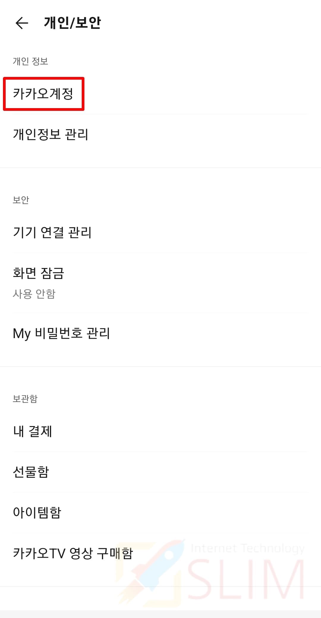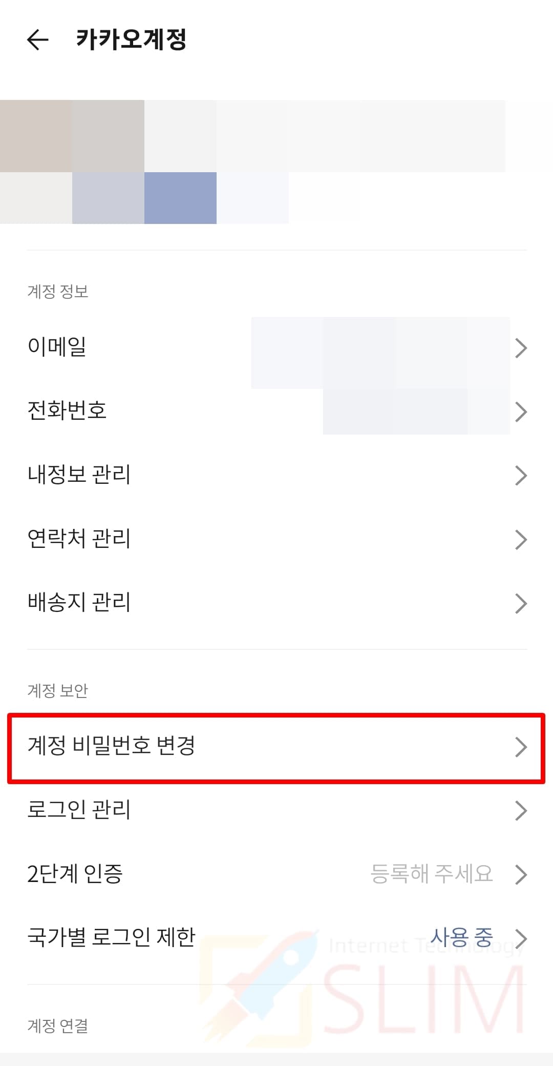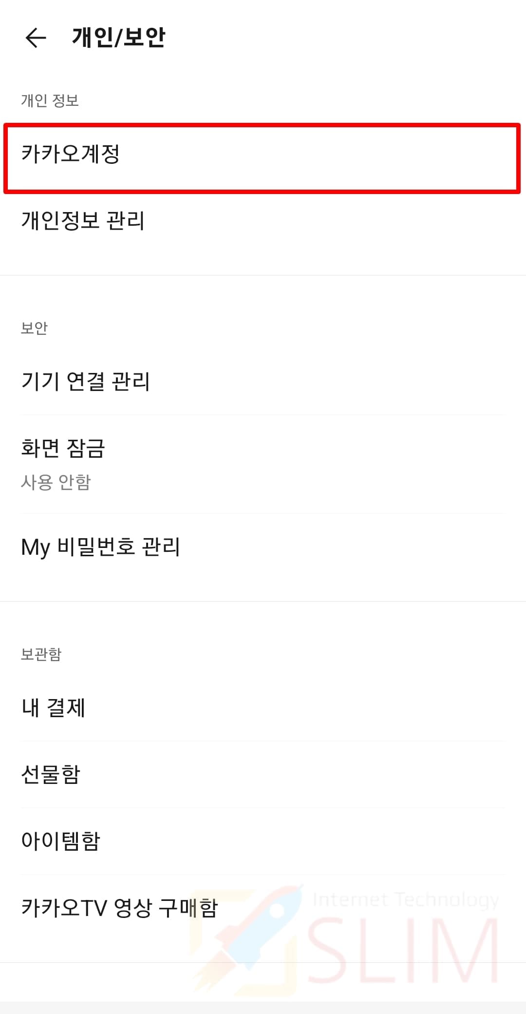 2. 현재 로그인된 카카오계정 정보를 확인합니다.