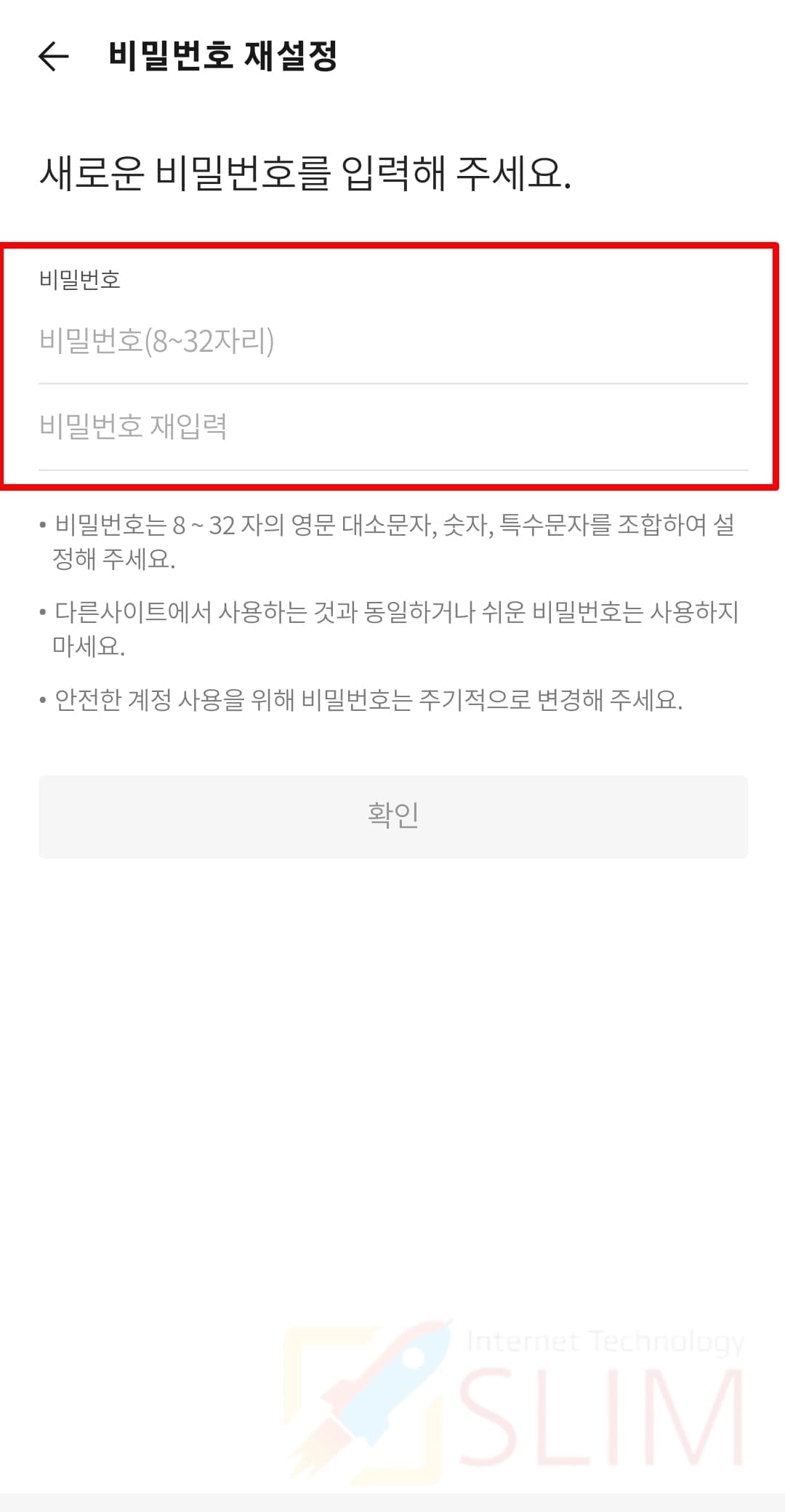 7. 새로운 카카오계정 비밀번호를 설정합니다.