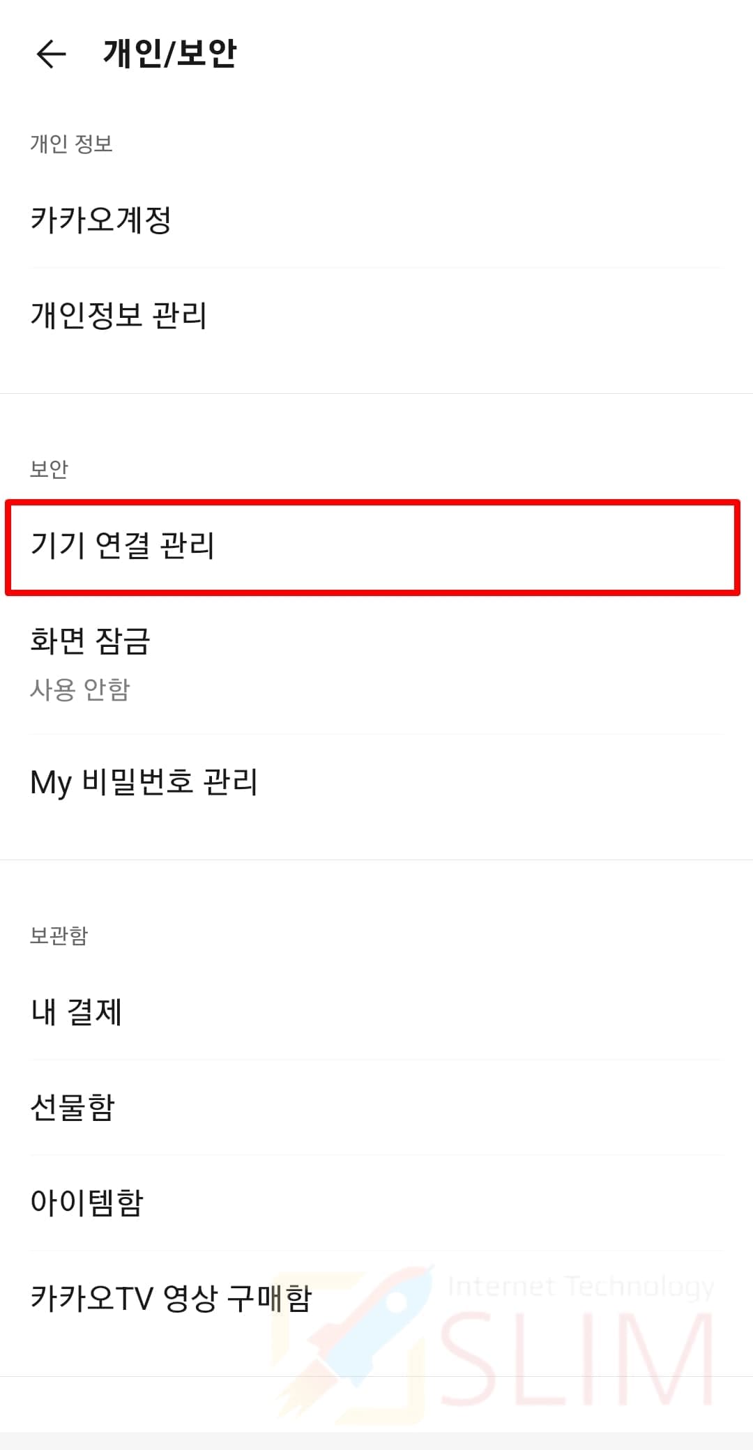 3. 보안에서 기기 연결 관리를 클릭합니다.