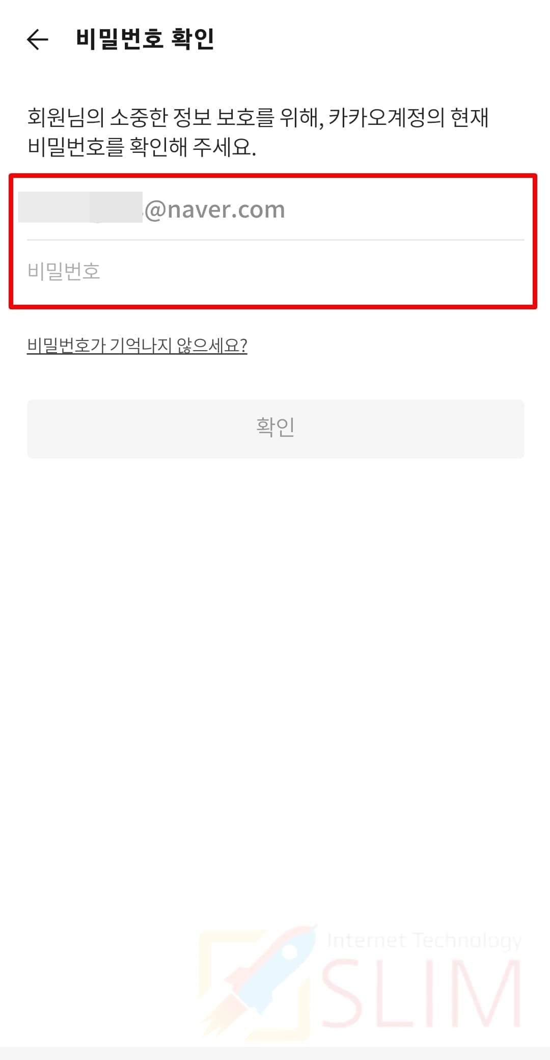 6. 현재 카카오계정 비밀번호를 입력합니다.