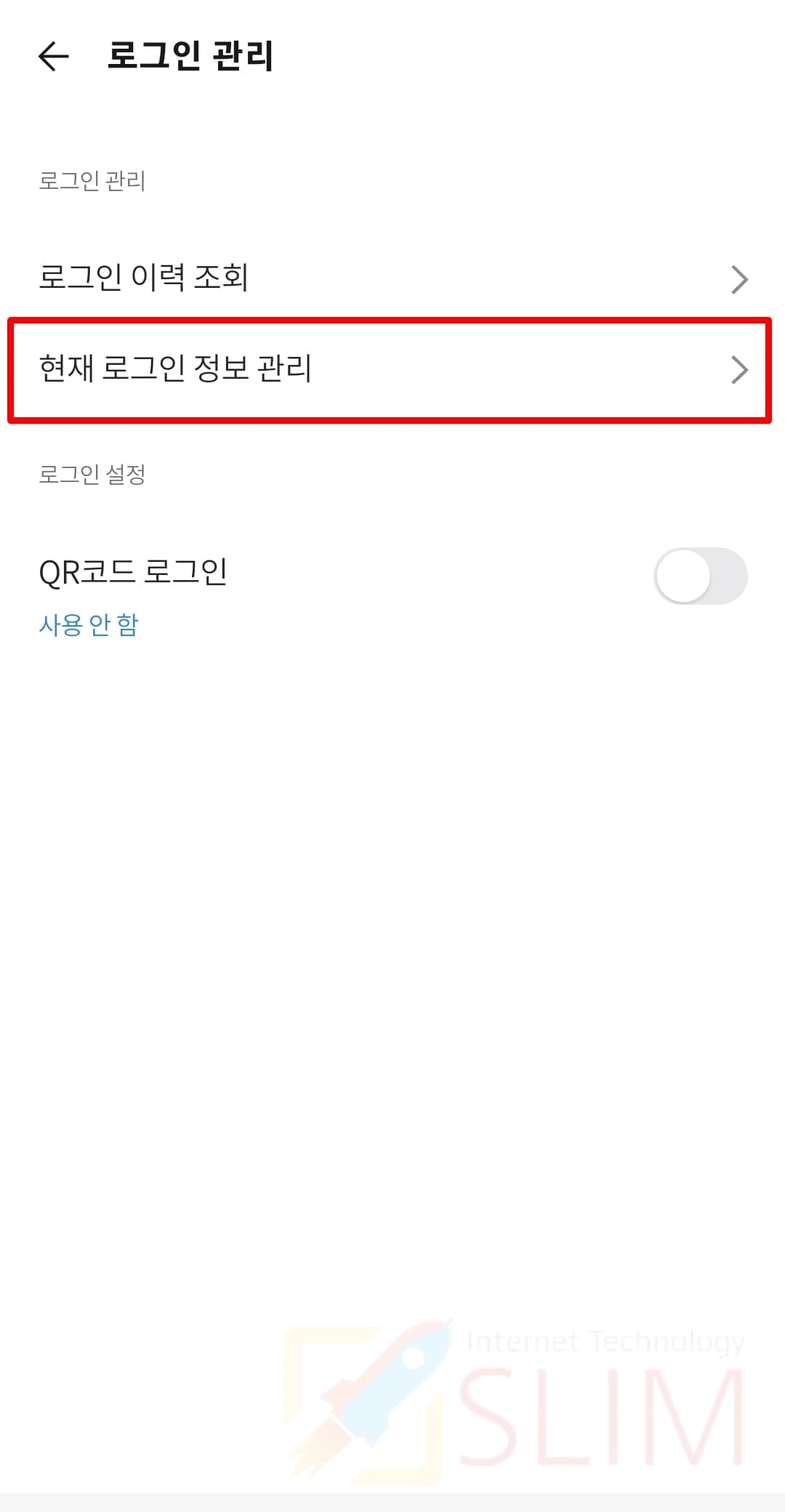 1. 현재 로그인 정보 관리를 클릭합니다.