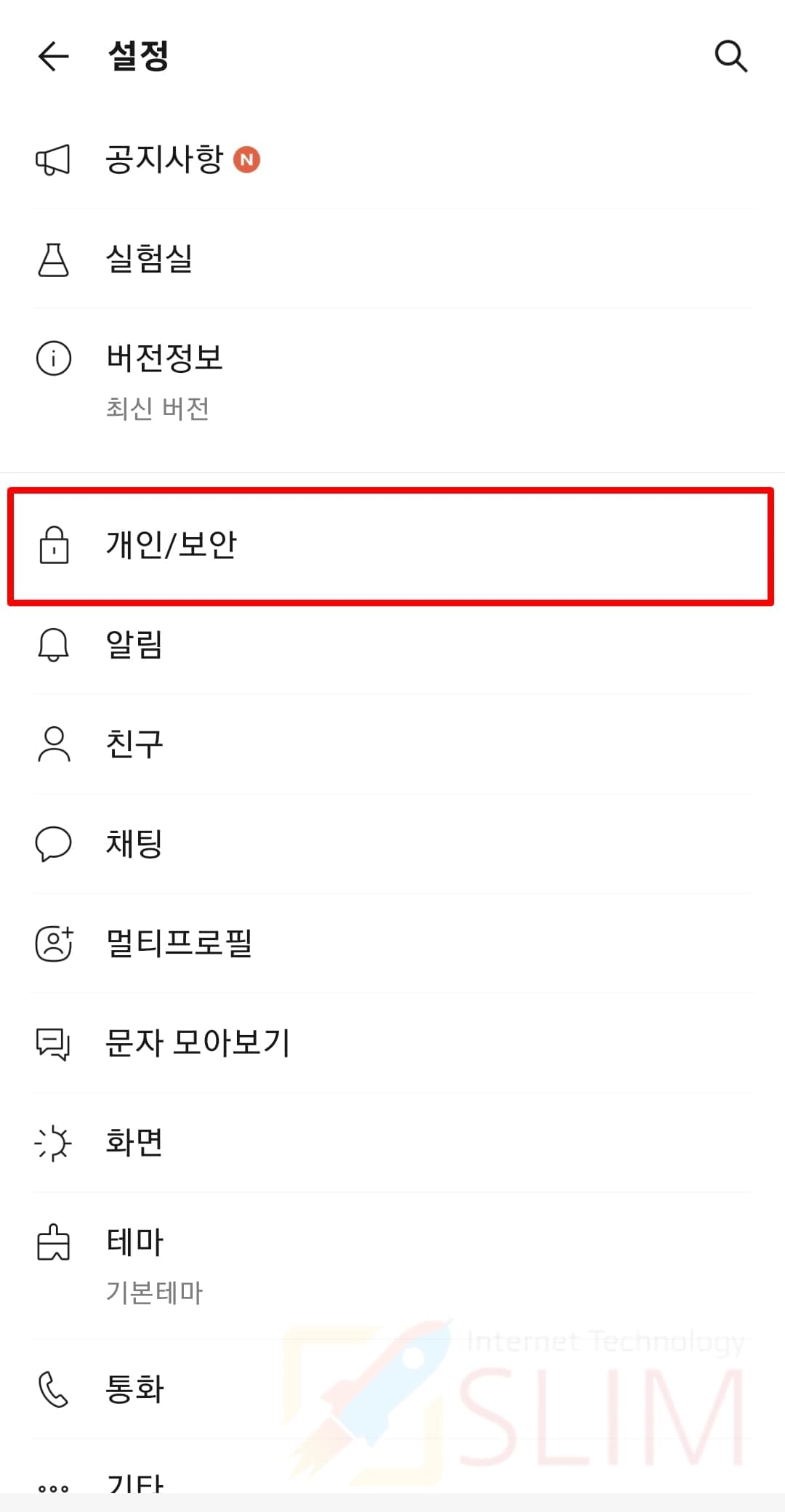 3. 개인/보안을 클릭합니다.