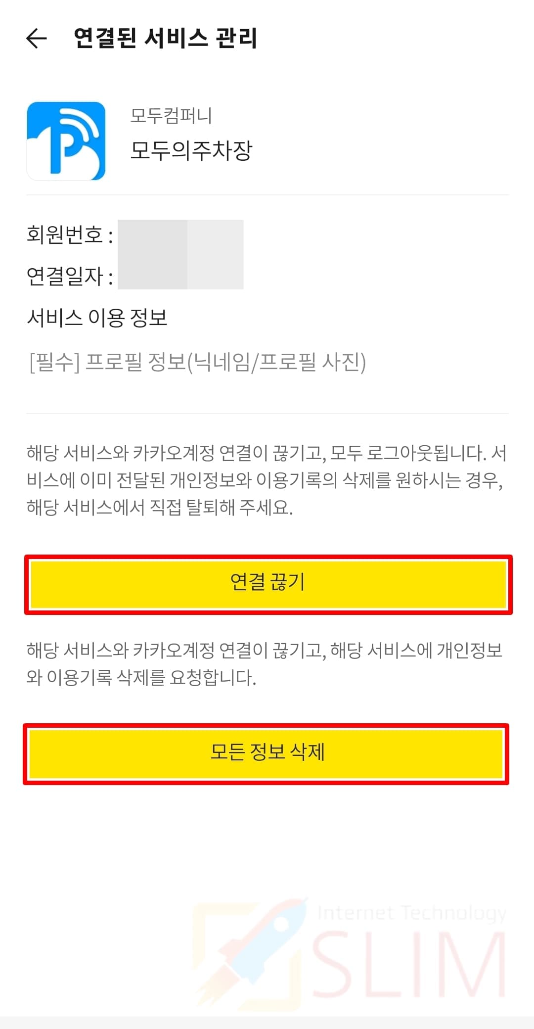 서비스의 내용으로 회원번호와 연결일자를 볼 수 있습니다. 위 방법으로 나의 카카오톡 계정으로 로그인할 수 있는 모든 서비스를 한눈에 볼 수 있고, 쉽게 해제시켜줄 수도 있습니다.