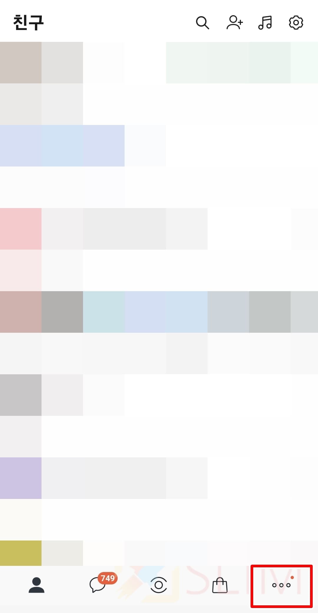 1. 카카오톡 앱을 실행하고 더보기 메뉴를 클릭합니다.