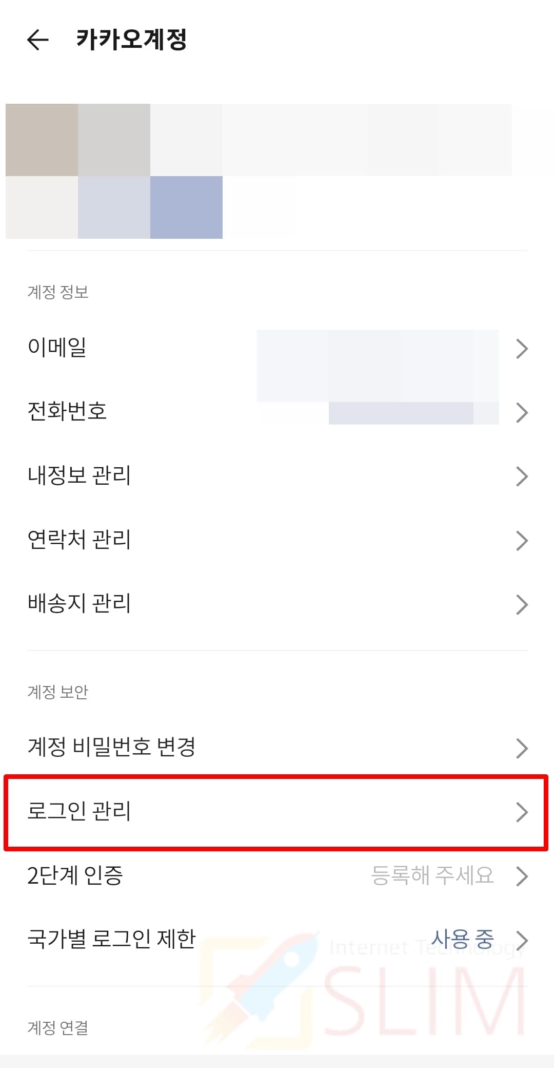 위 카카오톡 로그인 이력 확인하기에서 들어간 [로그인 관리] 페이지에서 곧바로 이용하시면 됩니다.