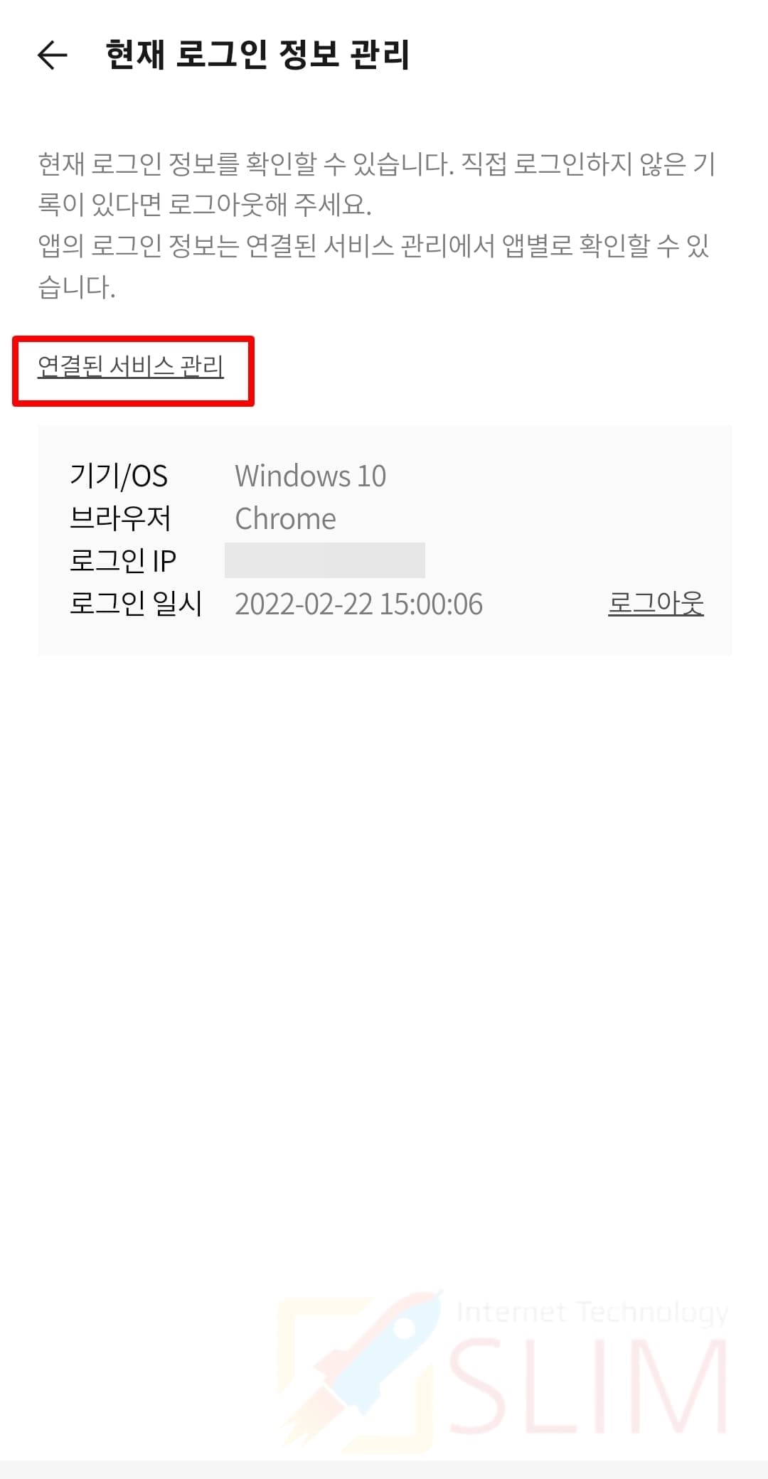 내가 연동로그인으로 사용하지 않는 서비스가 있다면 연결해제/탈퇴를 위해서 눌러서 들어가주시면 됩니다.