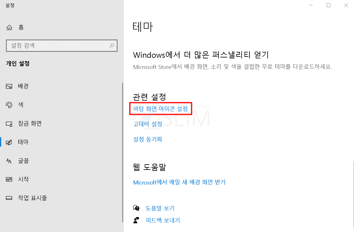 4. 관련설정 아래의 바탕화면 아이콘 설정을 누릅니다.