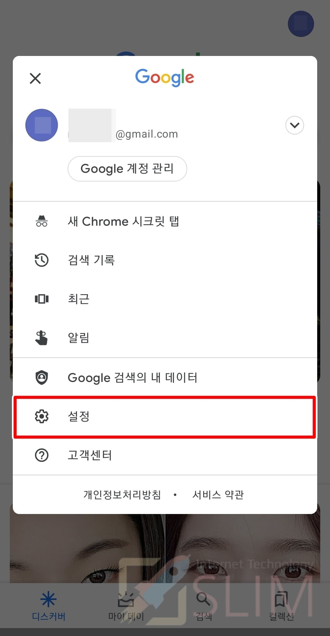 2. 우측 상단 나의 구글 계정 프로필을 누릅니다.