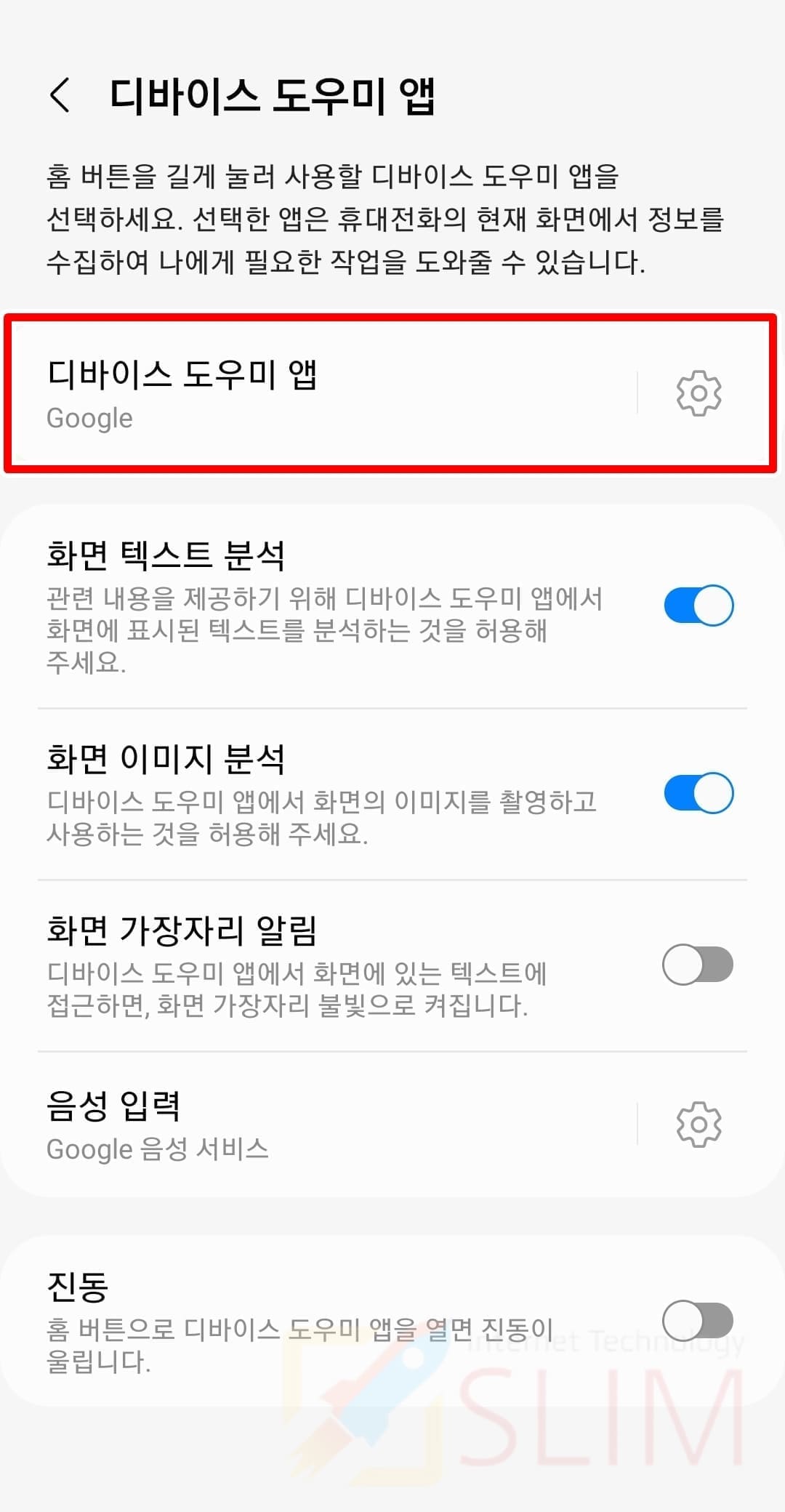 7. 홈버튼 구글 어시스턴트가 비활성화됩니다.