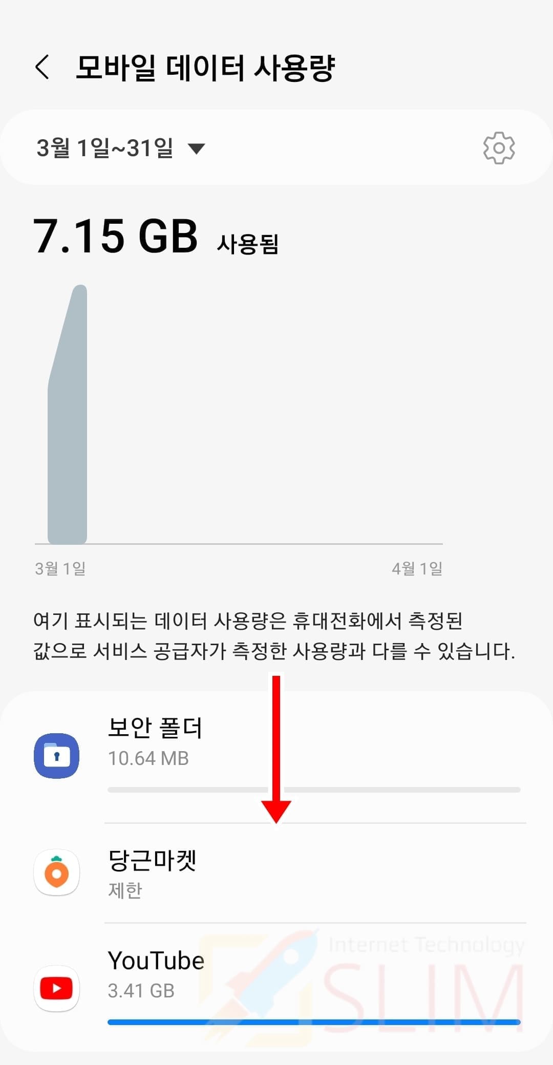 2. 데이터 측정일 및 사용량 경고를 누릅니다.