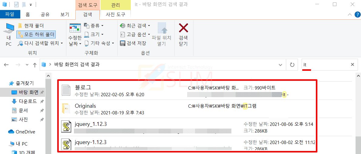 저는 예시로 IT를 검색해보았는데요. 기존에는 제목에서만 검색되는 윈도우 탐색기의 기능이 이제는 파일 문서 안의 내용까지 검색해서 표시해주는 것을 확인할 수 있었습니다. 이제 기억나는 파일 문서 안의 내용을 검색해보시면 쉽게 파일을 찾으실 수 있을 것입니다. (단점으로는 내용까지 검색하게 되면 컴퓨터가 검색이 완료되어 표시되기까지 시간이 오래 소요될 수 있습니다. 인내심을 가지고 목록이 나올 때까지 기다려주시길 바랍니다.)