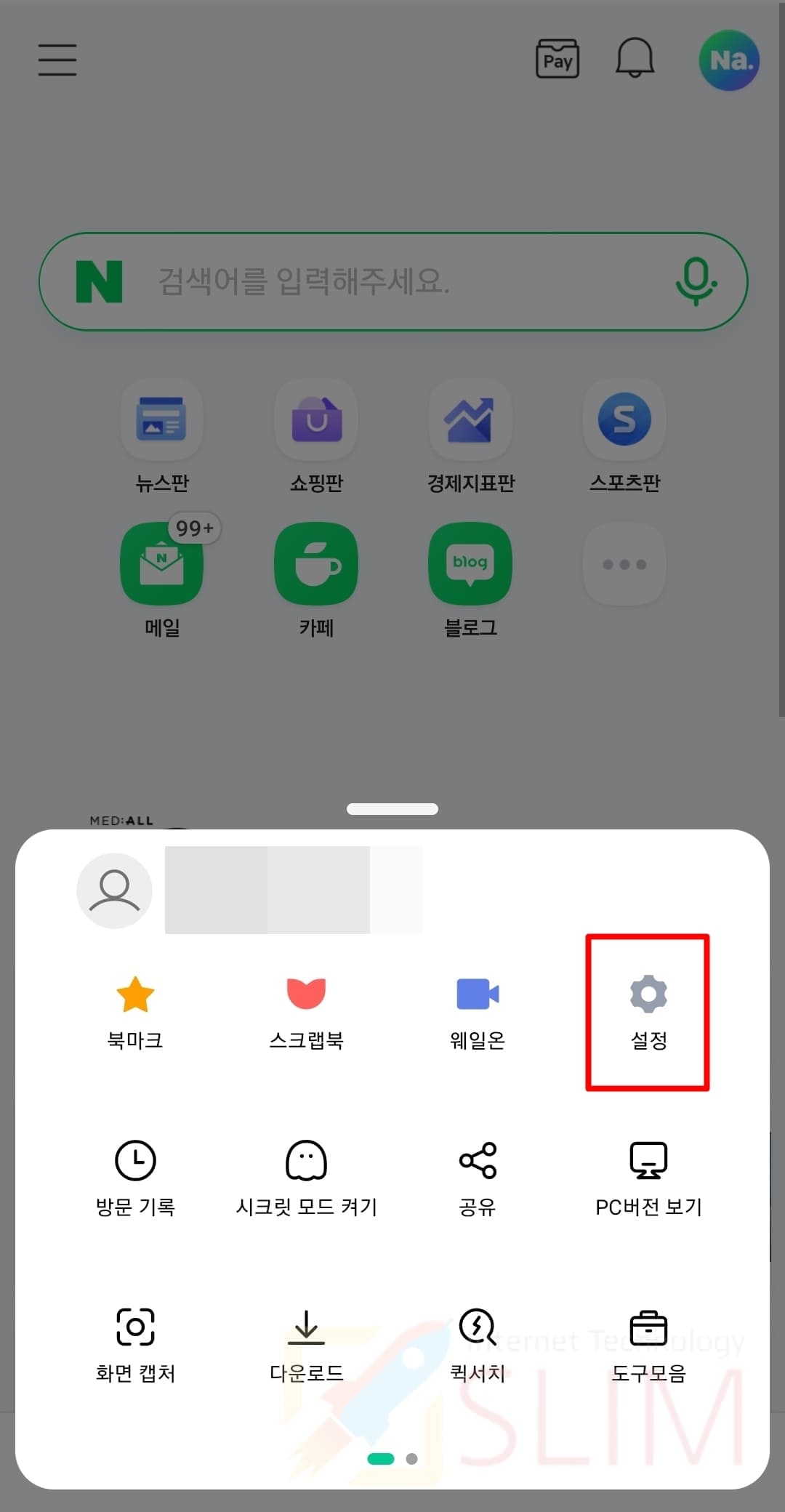 1. 네이버웨일 앱에서 더보기 버튼을 누릅니다.