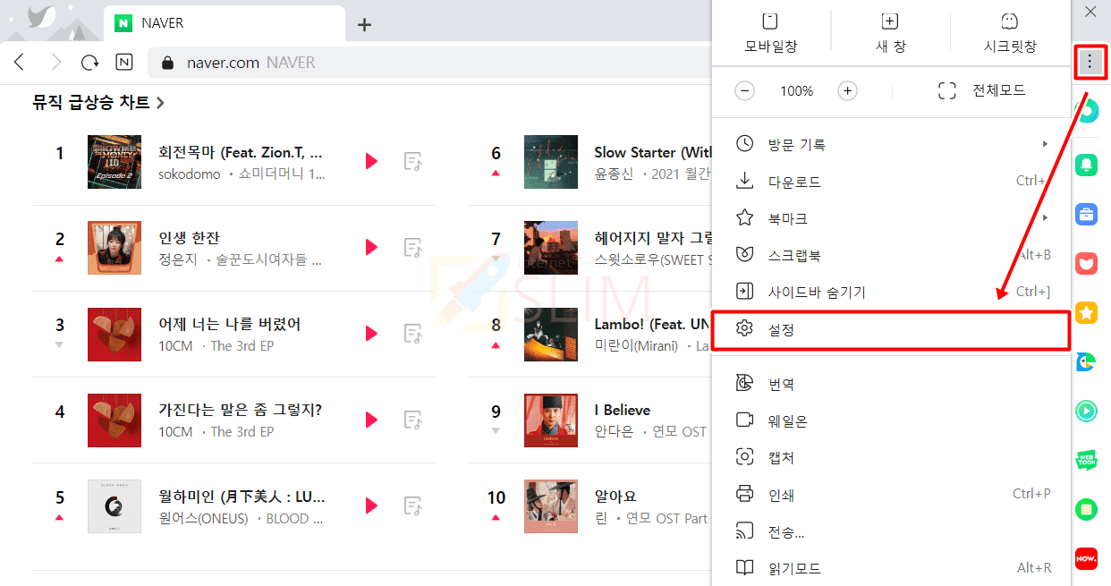 1. 네이버 웨일에서 더보기 버튼을 누릅니다.