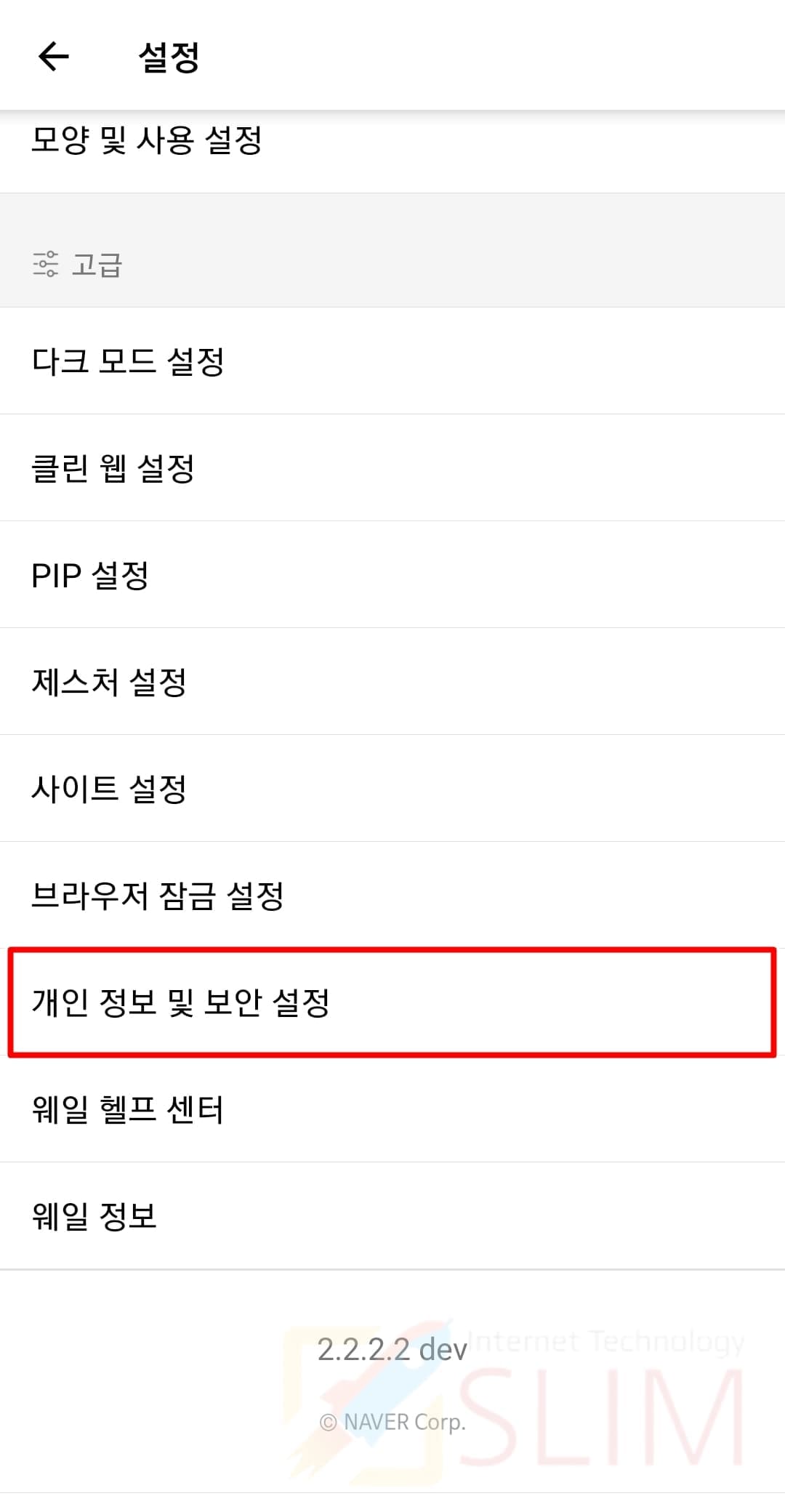 3. 개인 정보 및 보안 설정을 누릅니다.