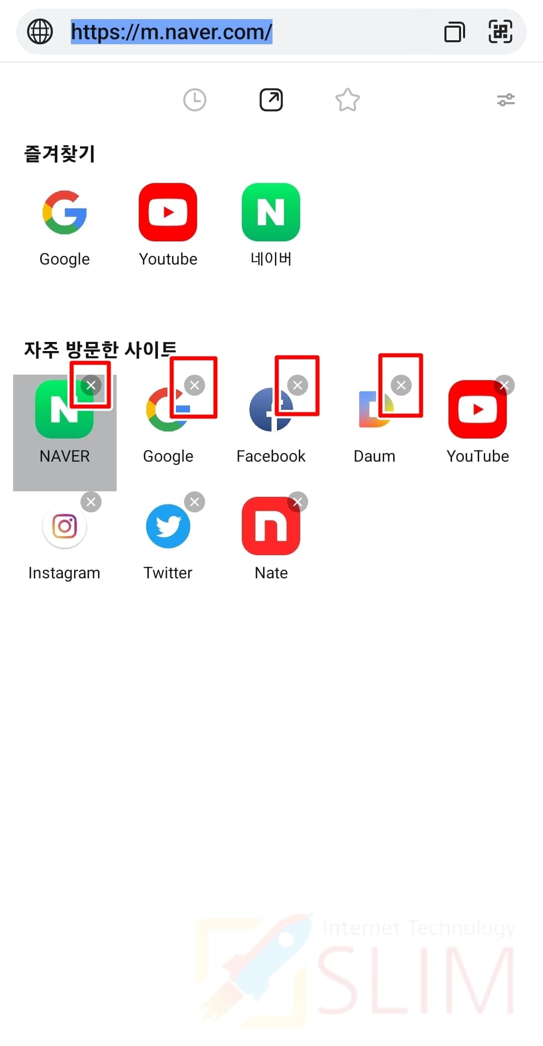 2. 자주 방문한 사이트 목록에서 지우고 싶은 사이트를 길게 누릅니다.