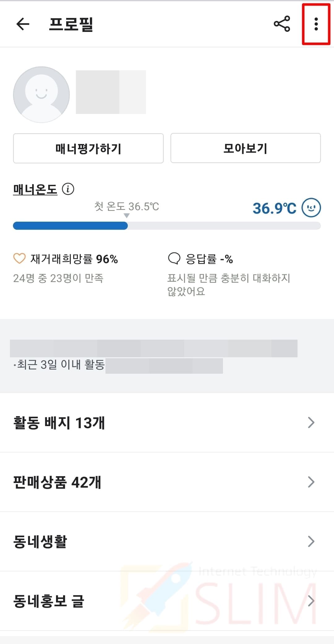 2. 우측 상단 더보기 버튼을 누릅니다.