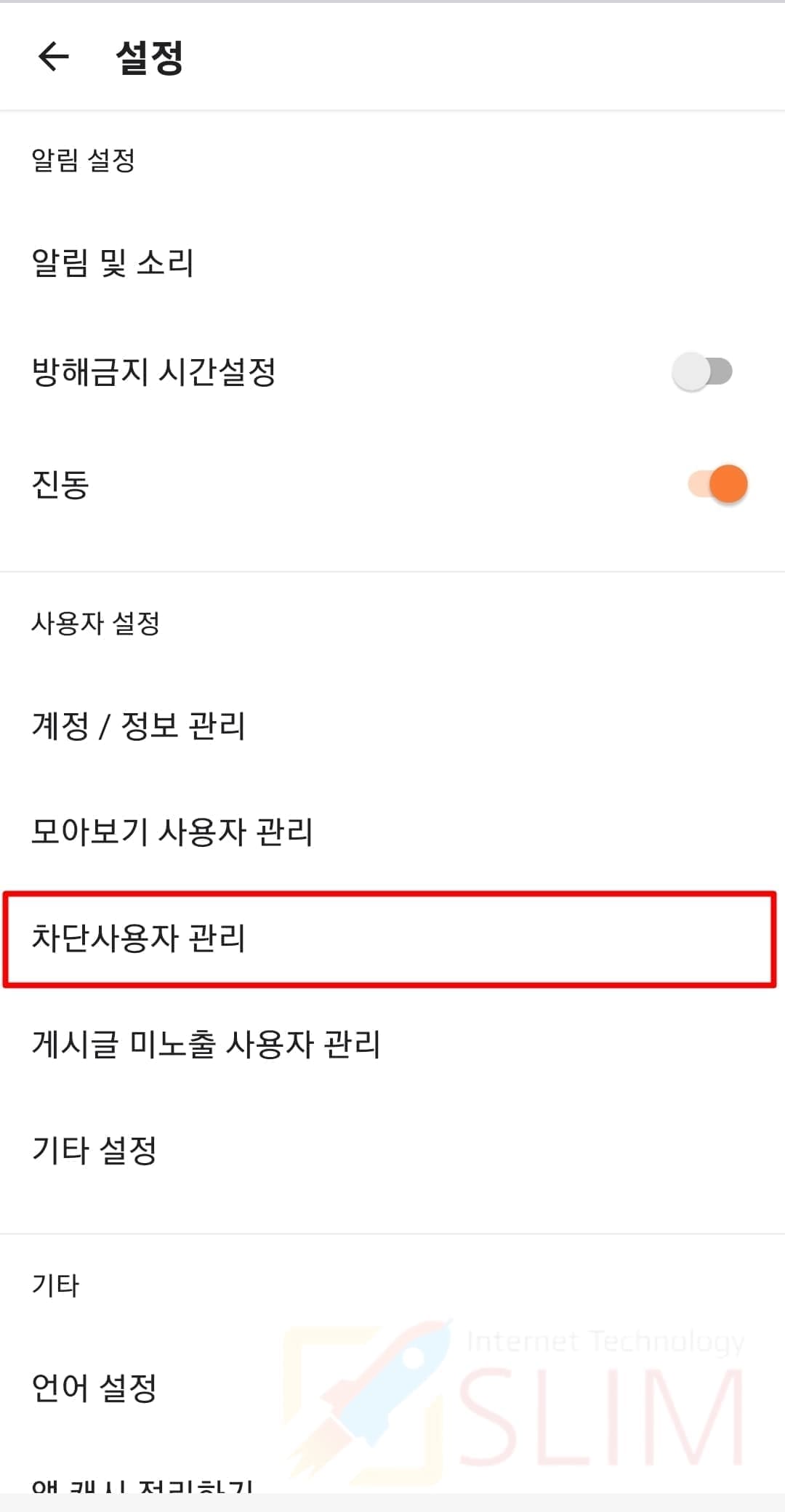 3. 차단사용자 관리를 누릅니다.