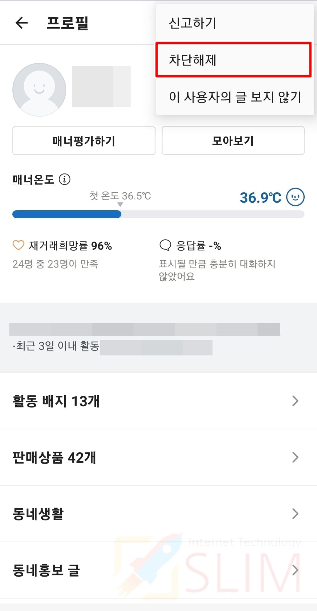 5. 당근마켓 상대방이 차단됩니다.