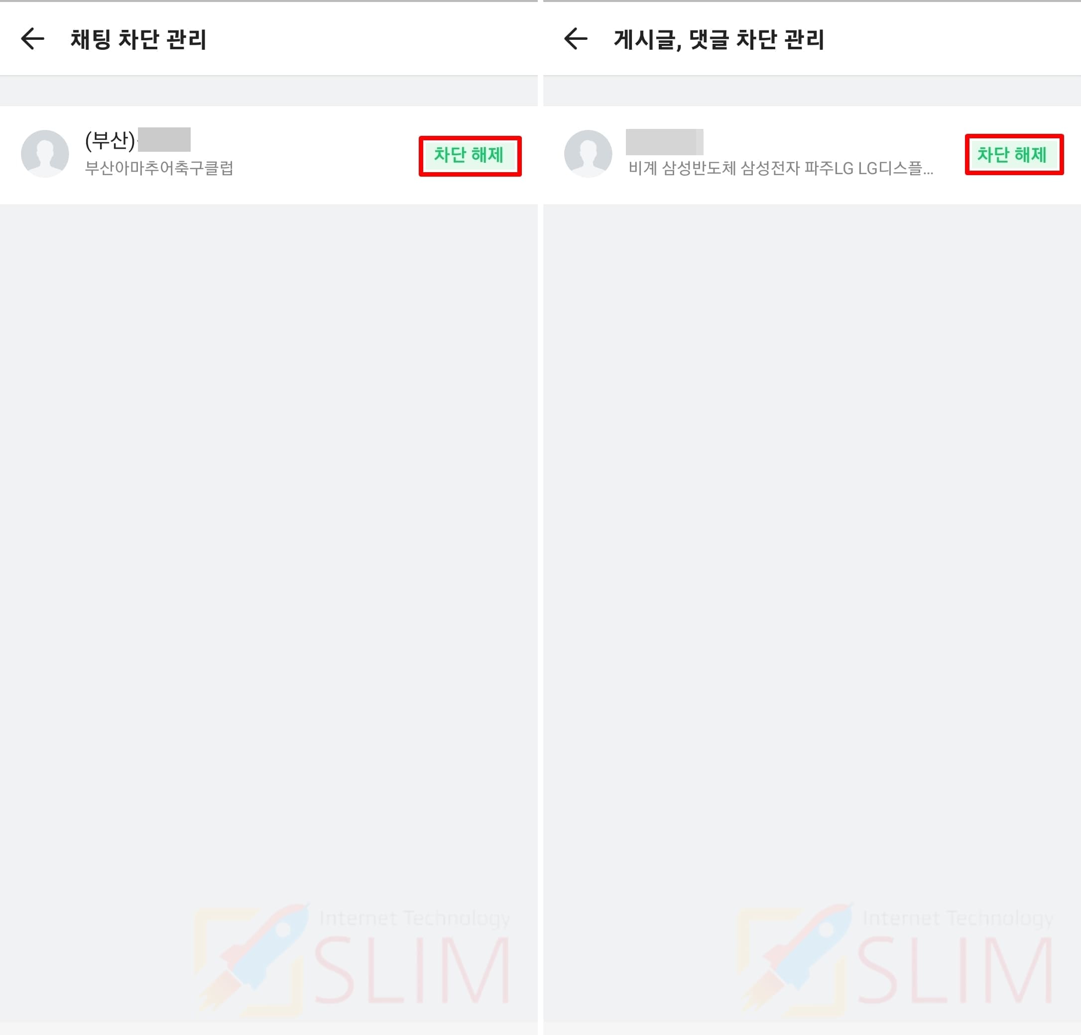 5. 우측 차단 해제 버튼으로 쉽게 차단을 풀 수 있습니다.