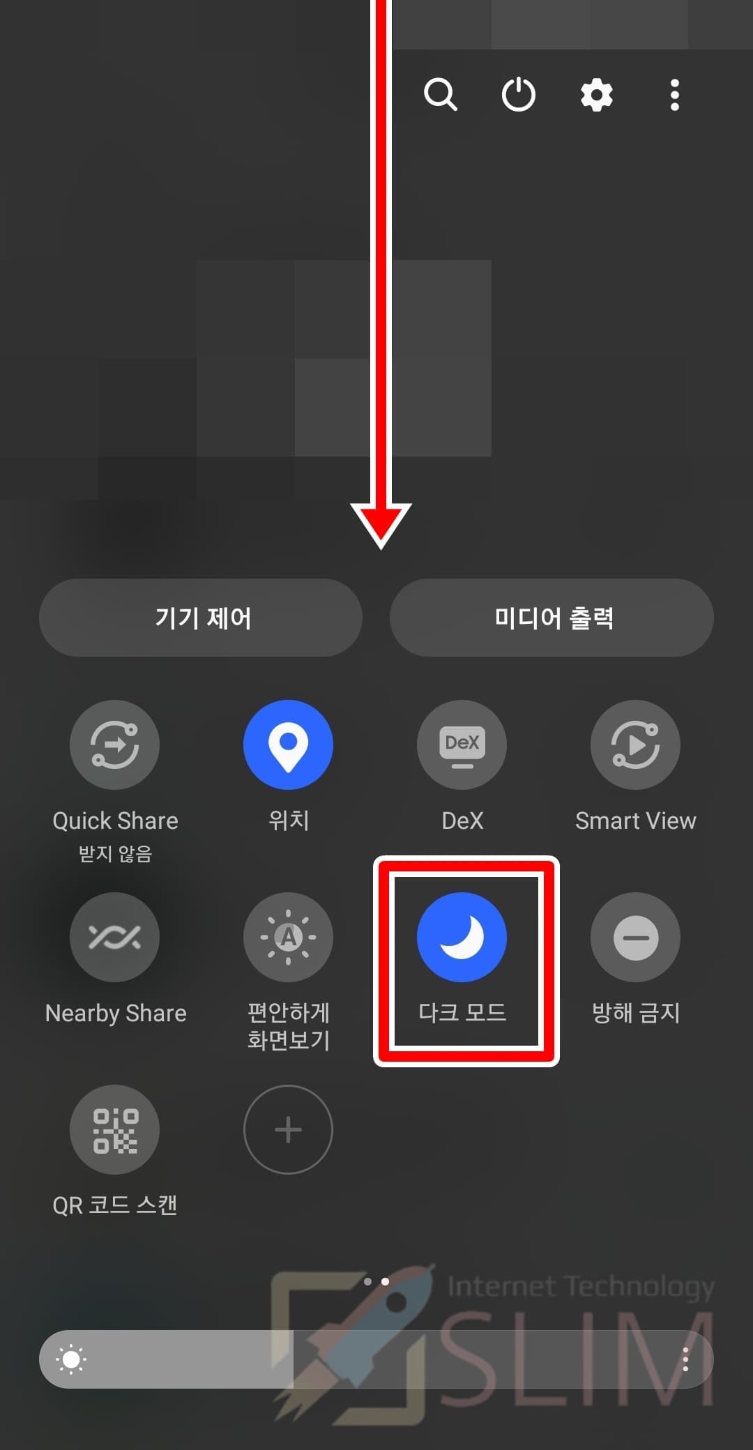1. 스마트폰의 상단바를 아래로 내립니다.