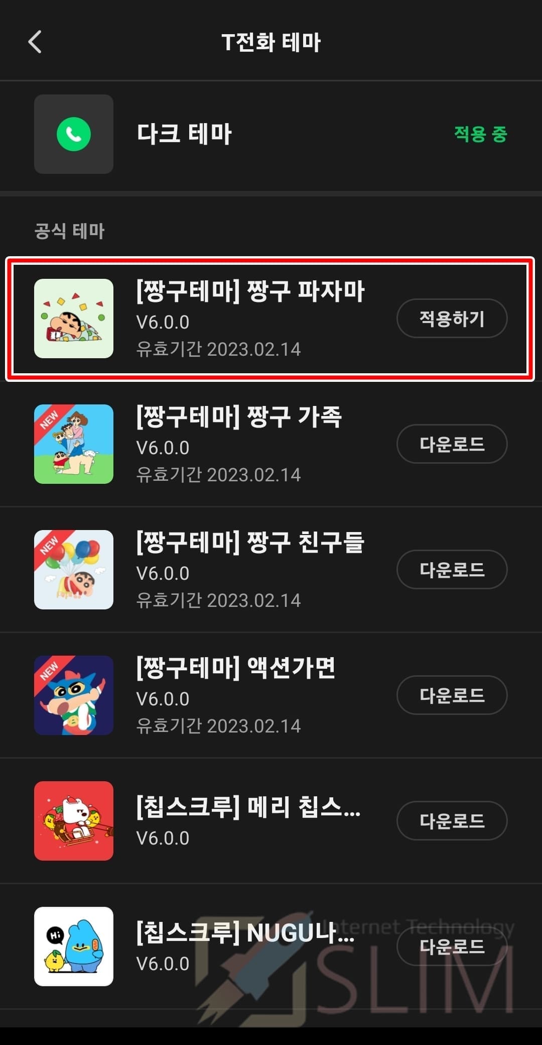 1. T전화 테마 메뉴에서 공식 테마를 확인합니다.