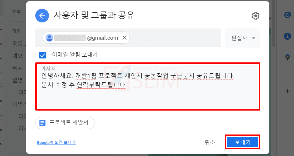 13. 상대방 이메일로 구글 문서가 공유됩니다.