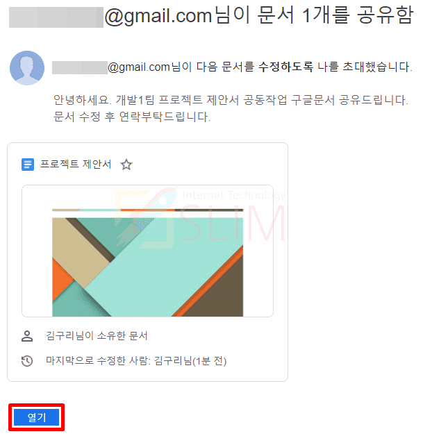 2. 구글 문서 공유 이메일을 클릭합니다.