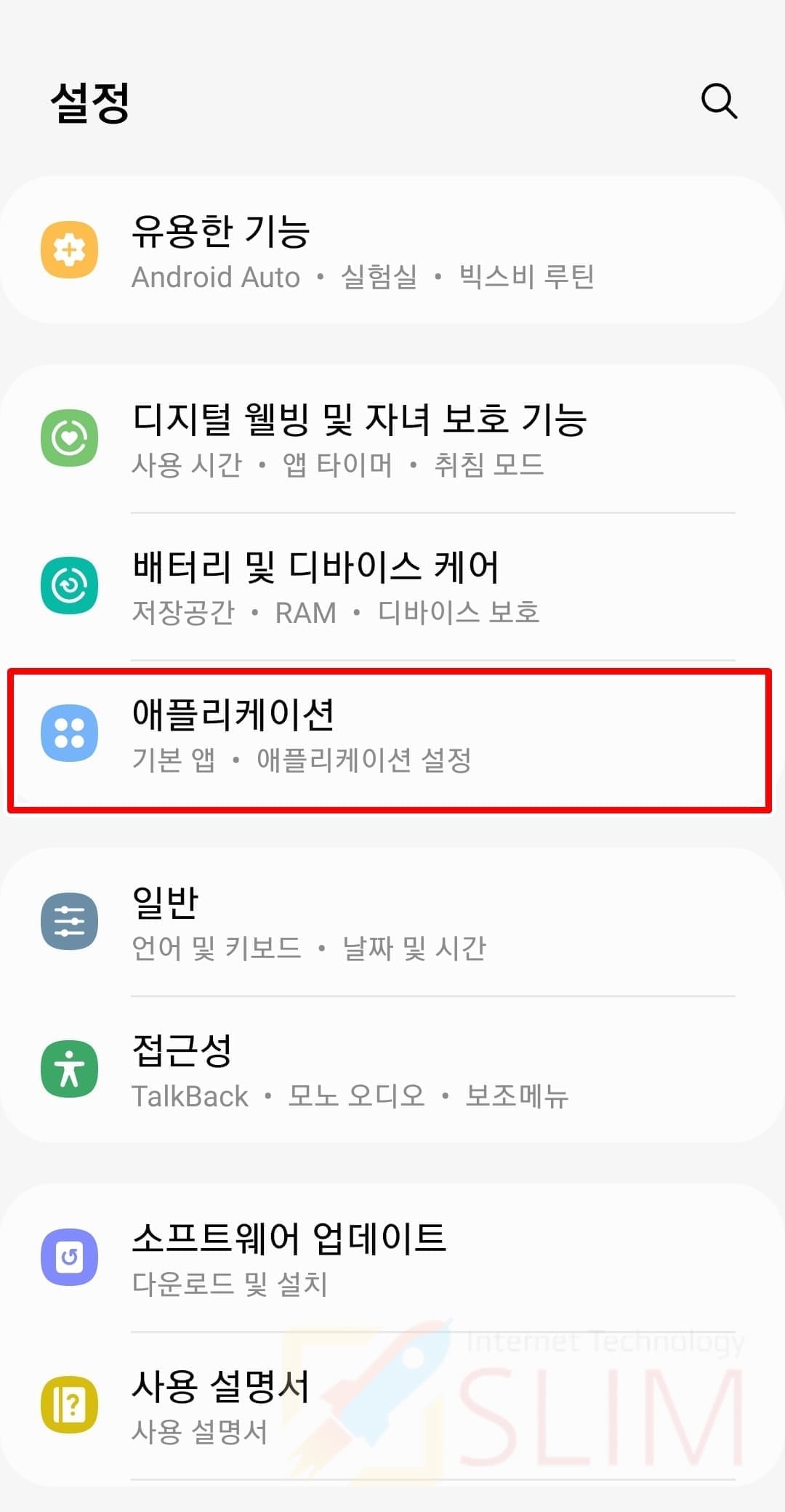 2. 애플리케이션을 누릅니다.
