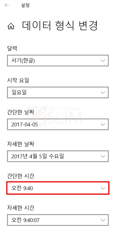 6. 아래에 숫자만 있는 24시간제로 눌러서 설정합니다.