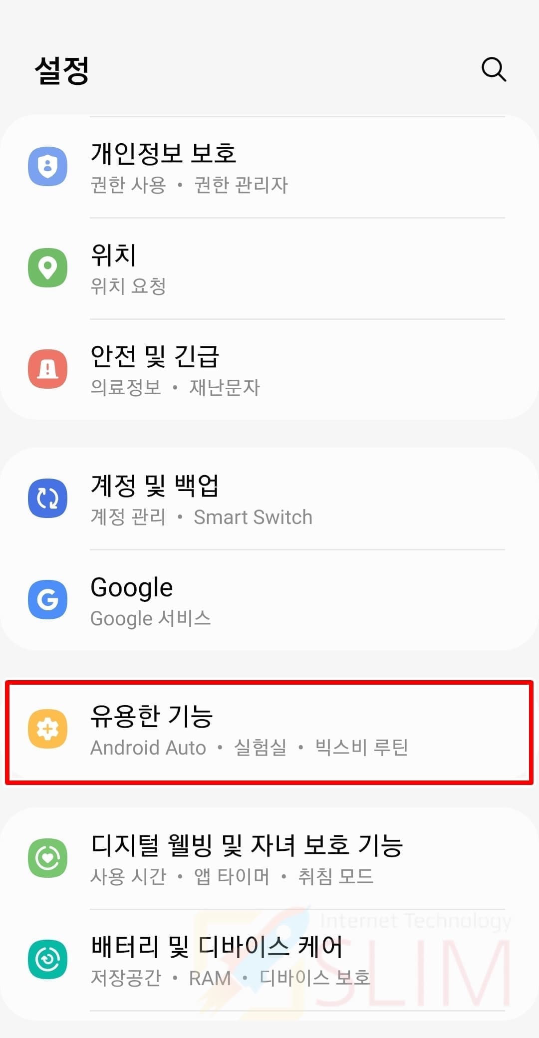 1. 갤럭시 설정 앱에서 유용한 기능을 클릭합니다.