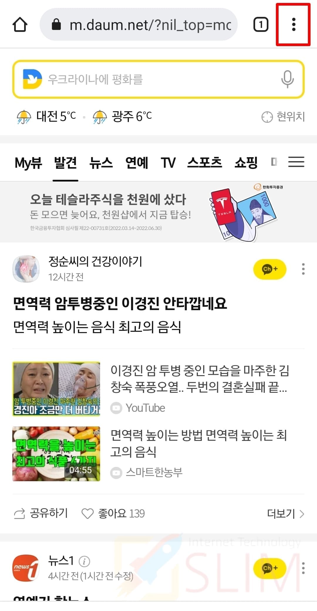 1. 크롬 앱에서 더보기 버튼을 클릭합니다.