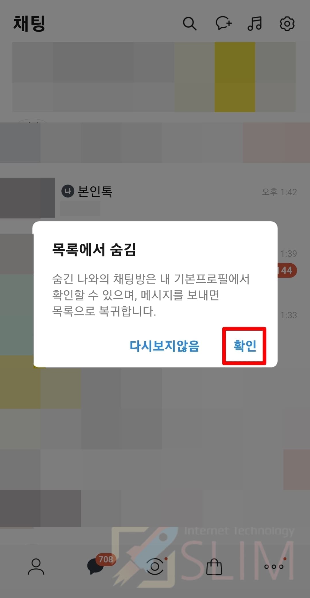 4. 나와의 채팅방 숨김을 활성화합니다.