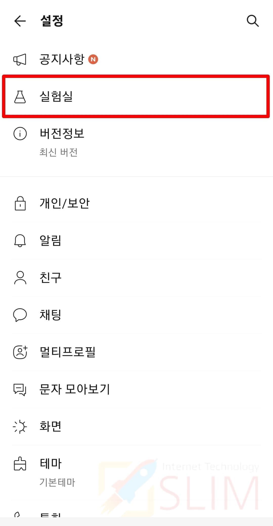 3. 실험실을 클릭합니다.