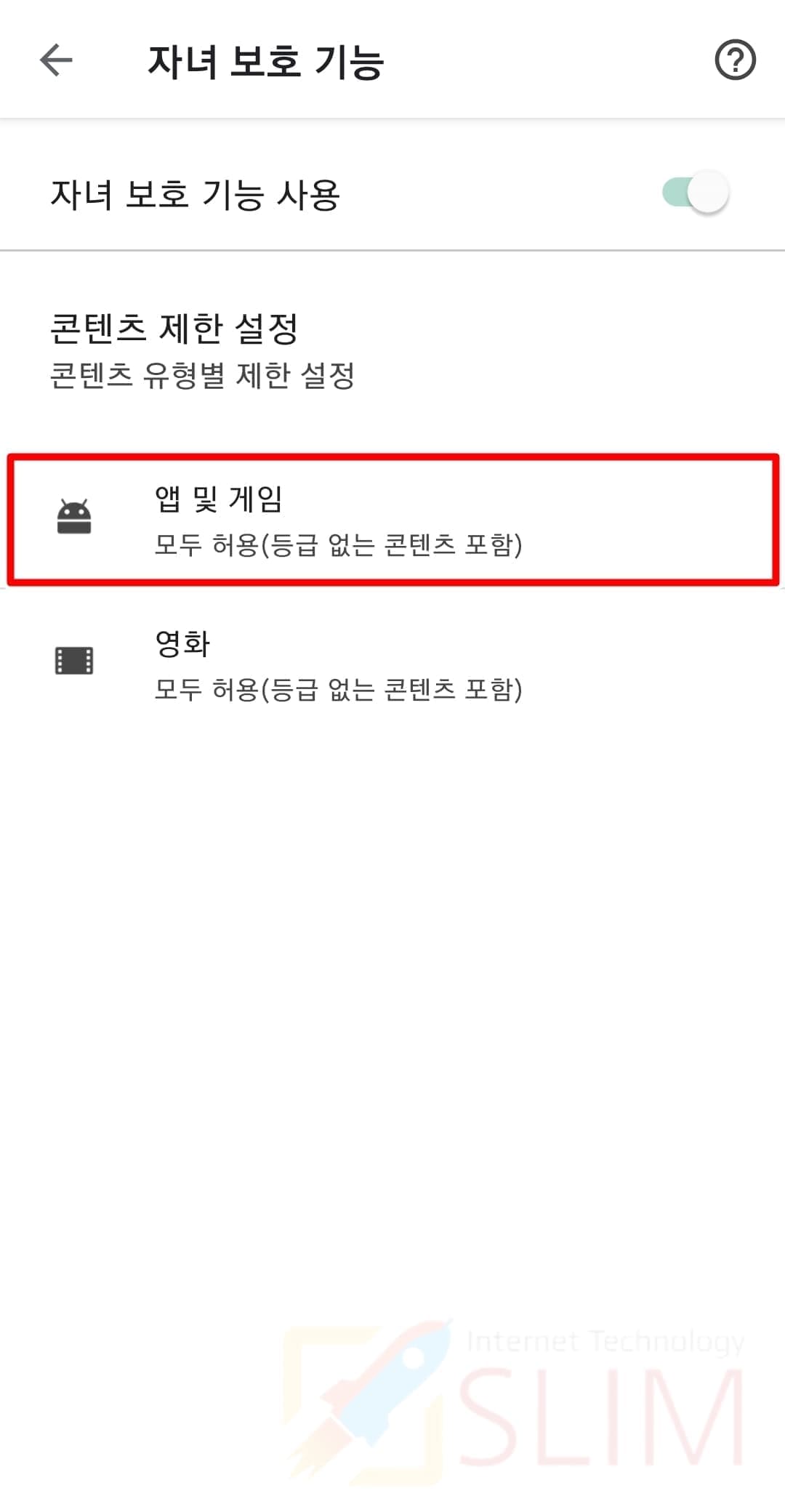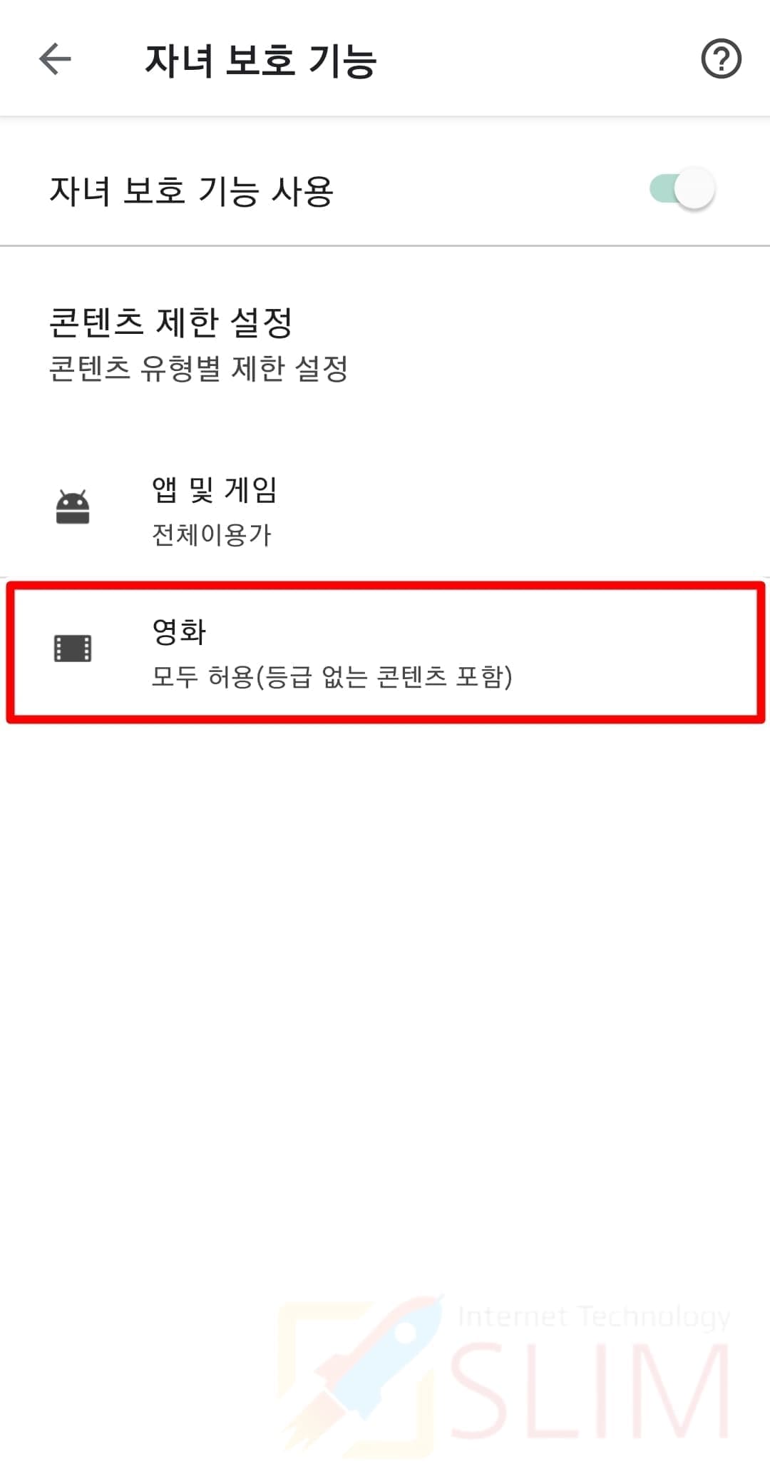 5. 자녀 보호 기능을 누릅니다.