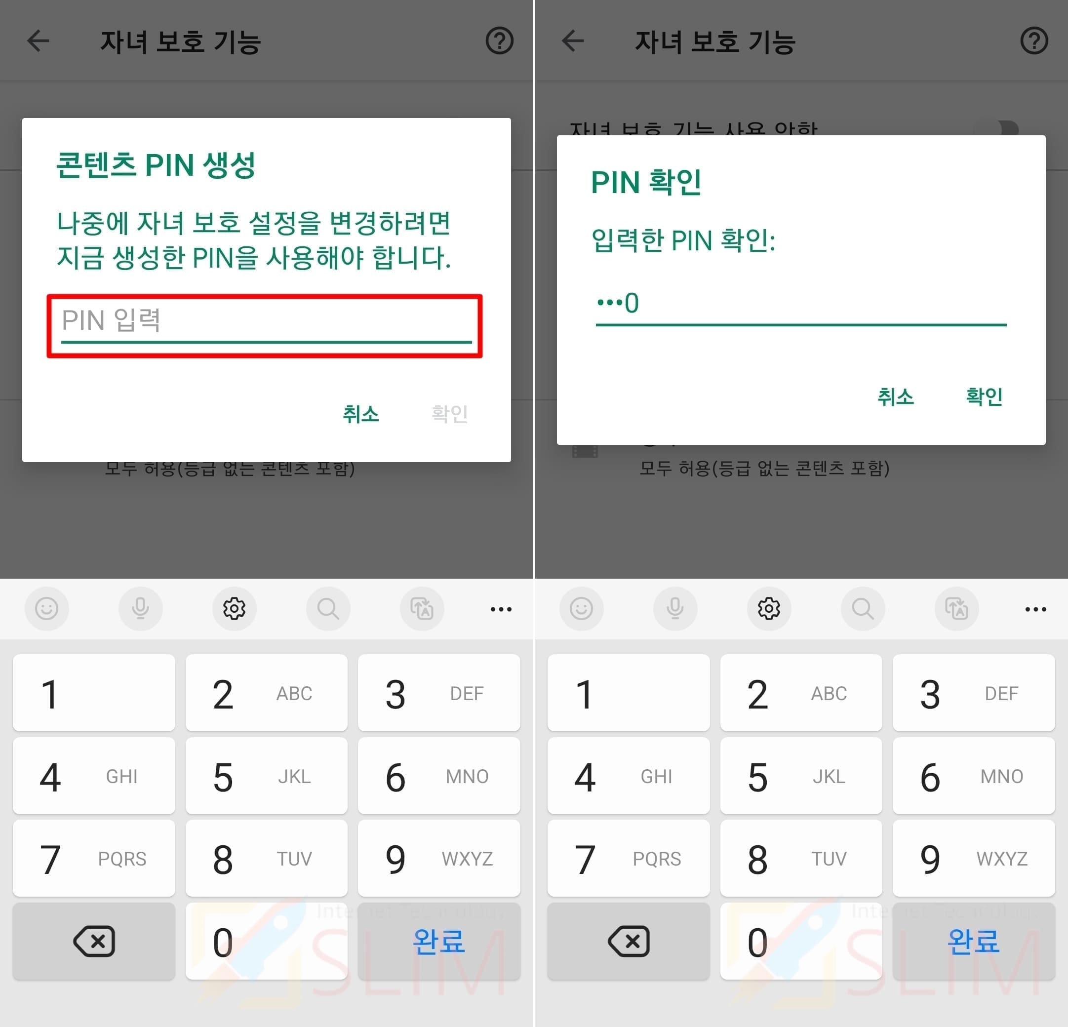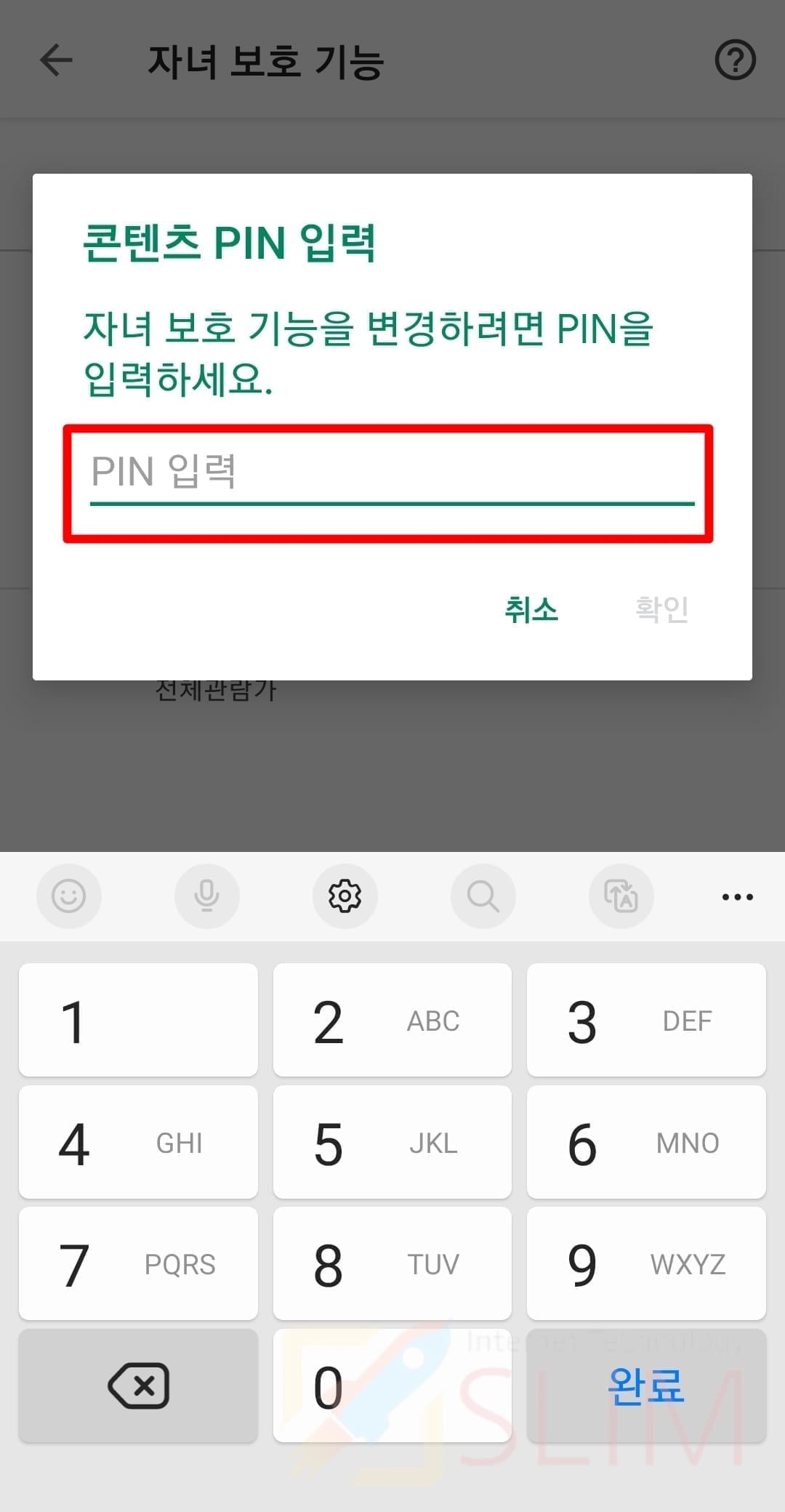 7. 자녀 보호로 설정했던 PIN 번호를 입력합니다.
