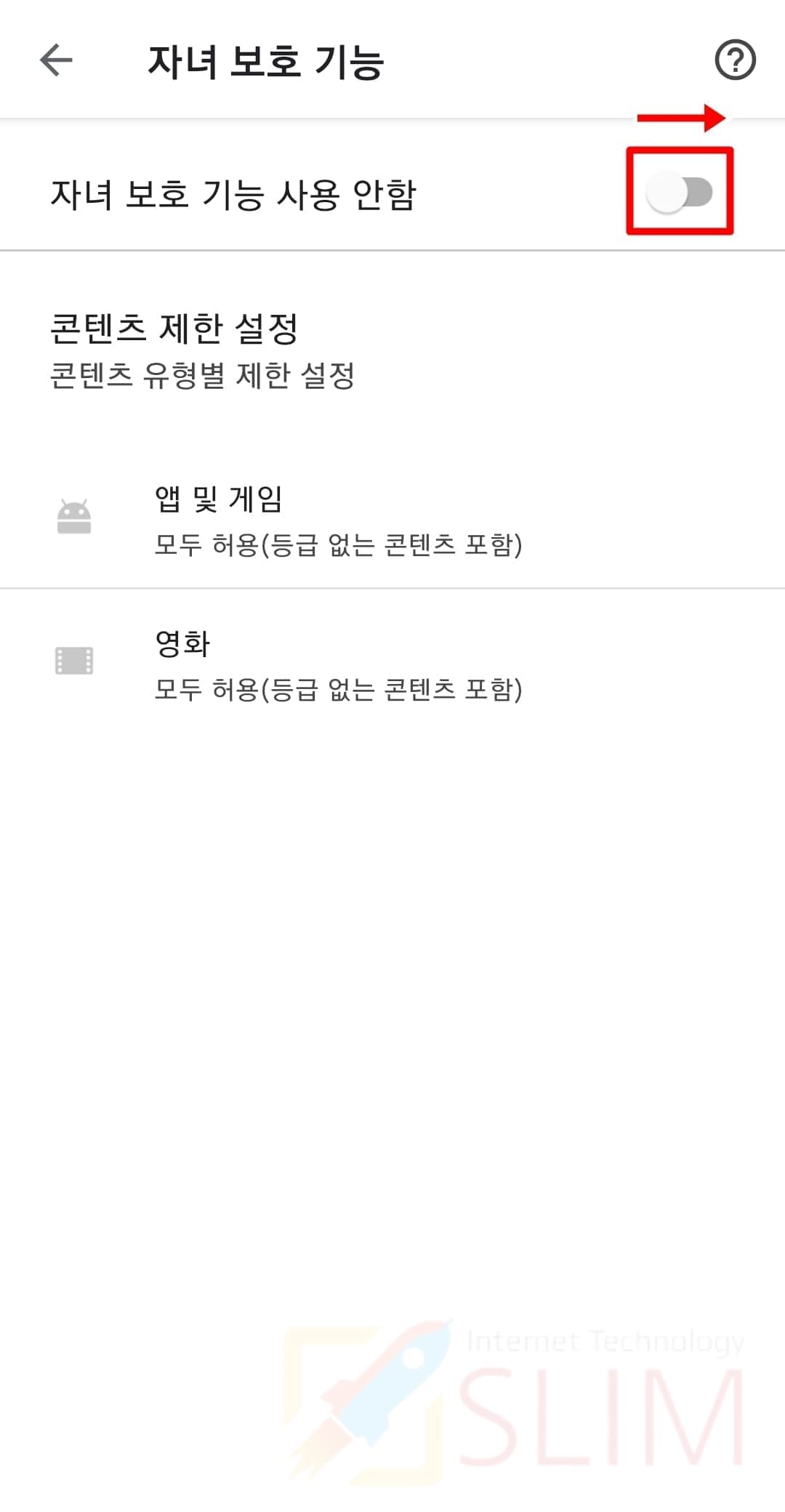 6. 자녀 보호 기능을 비활성화합니다.