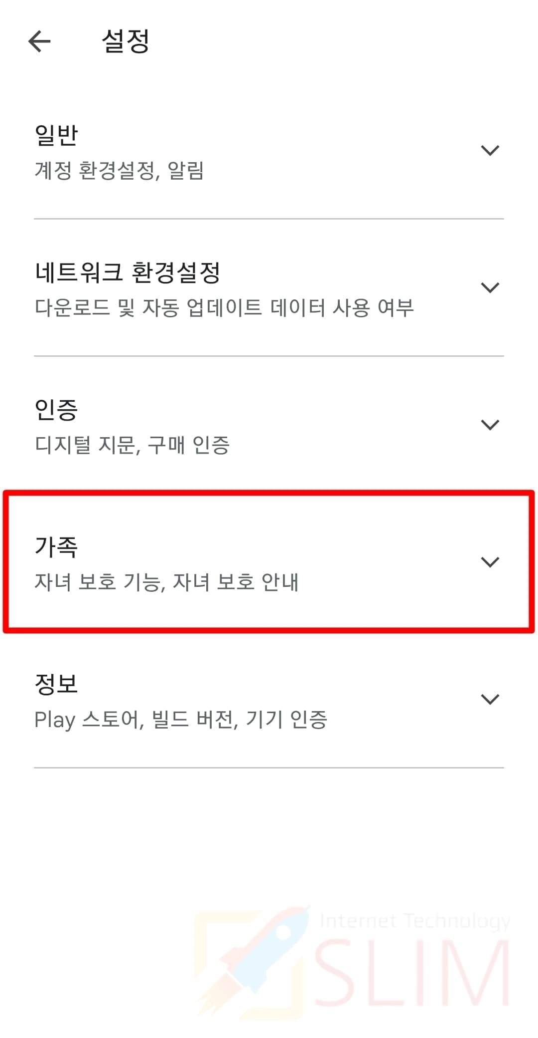 4. 가족을 클릭합니다.