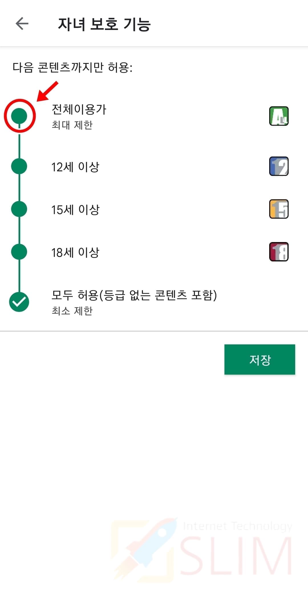 12. 모두 허용에서 제한 연령대를 클릭합니다.