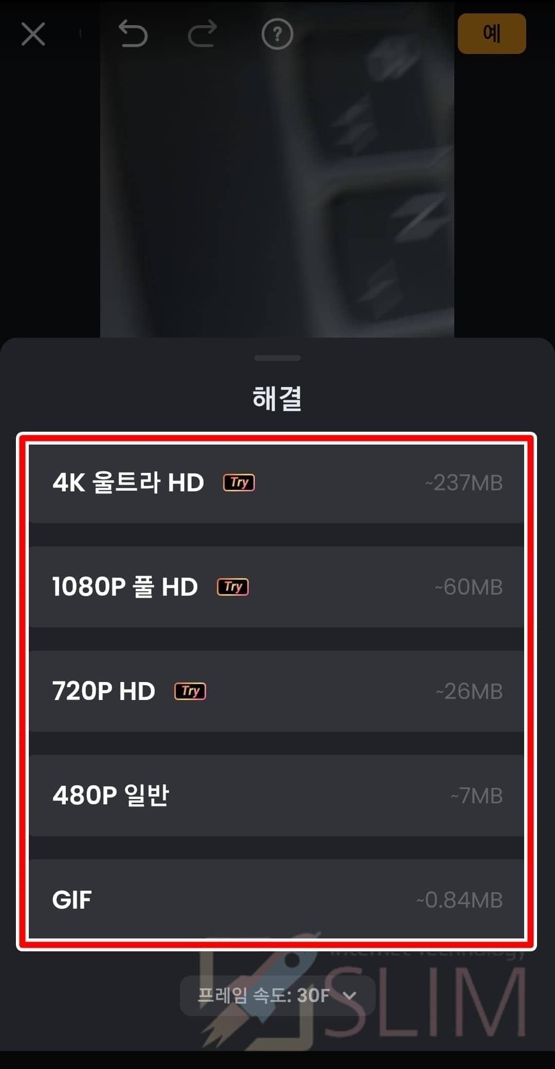 6. 해상도, 프레임 레이트, 품질을 설정해서 저장합니다.