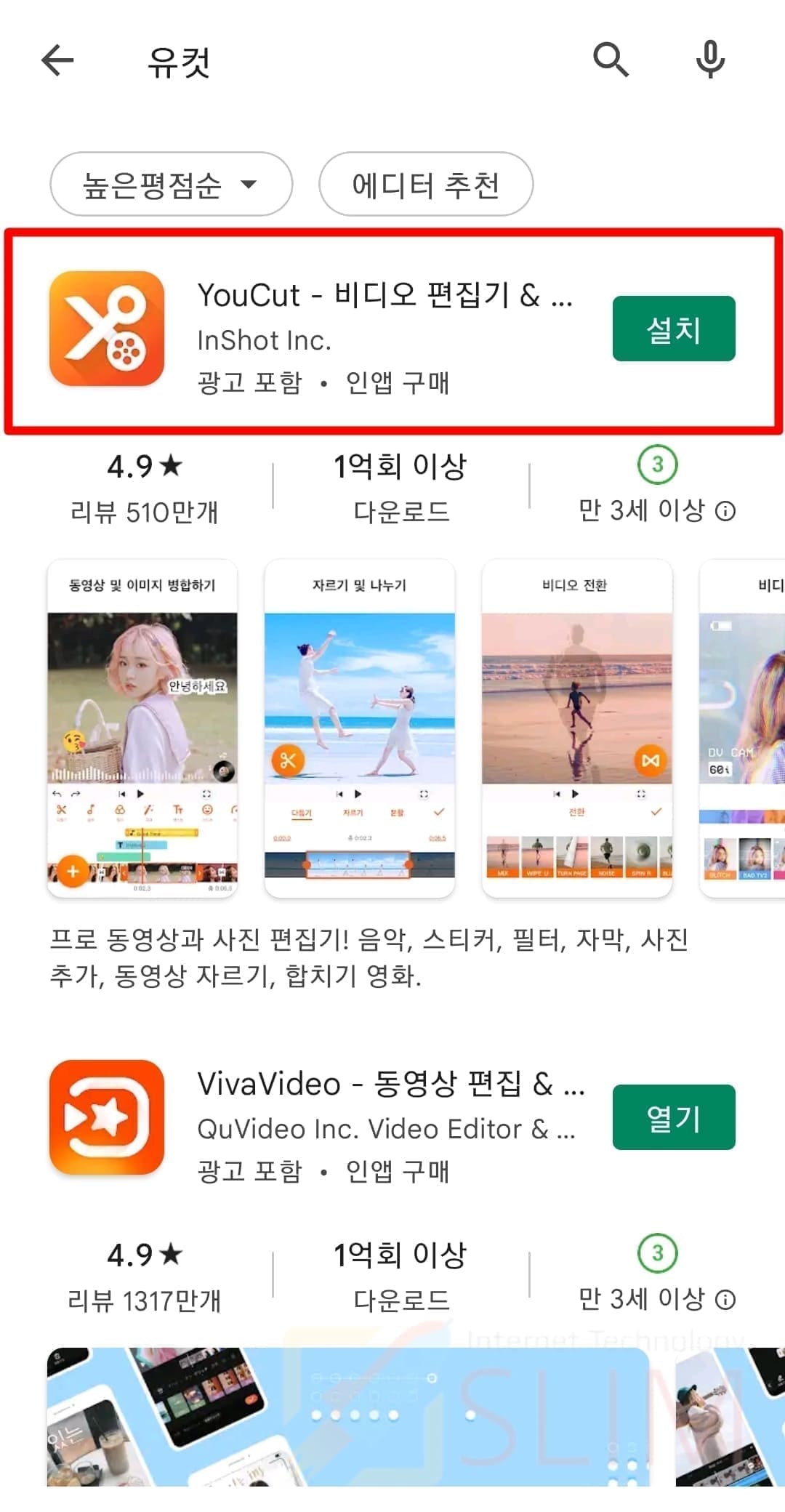 다음으로 추천드리는 앱은 유컷(YouCut)입니다. 이 앱 또한 유튜브 편집 앱으로 유명하며 무료로 사용할 수 있습니다.