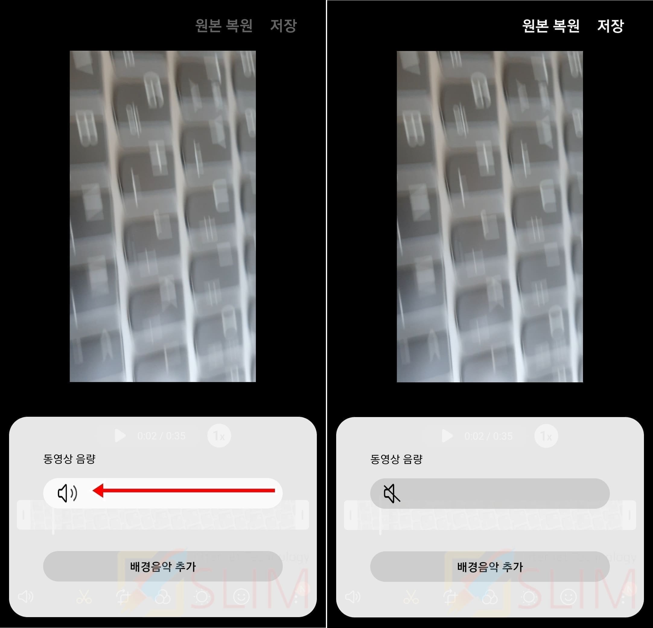 5. 동영상 음량을 좌측으로 끝까지 드래그합니다.