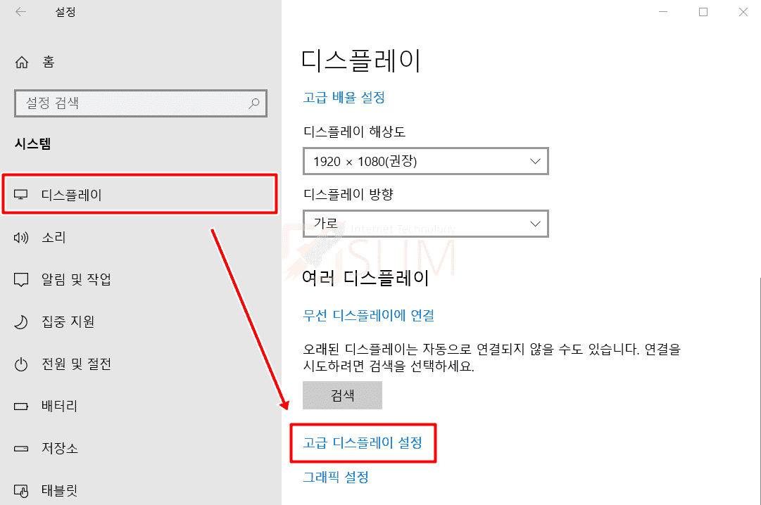 4. 디스플레이 > 고급 디스플레이 설정을 누릅니다.