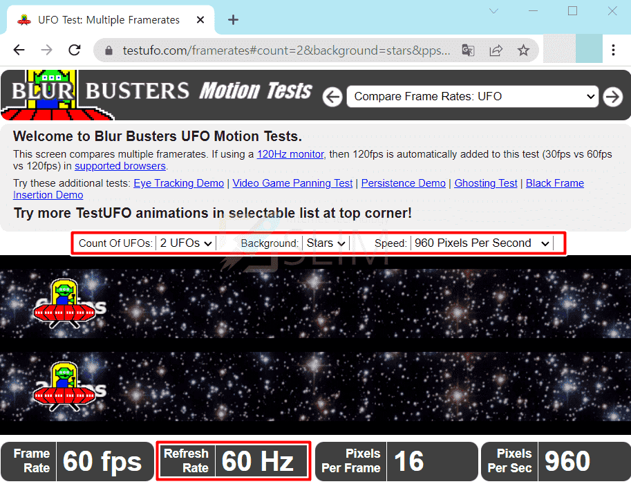 1. www.testufo.com 사이트를 실행합니다.