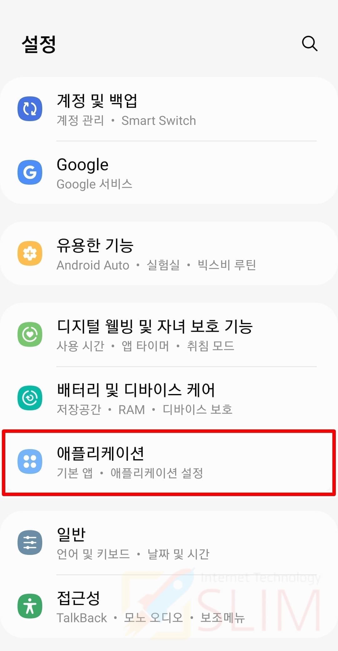 2. 애플리케이션을 누릅니다.