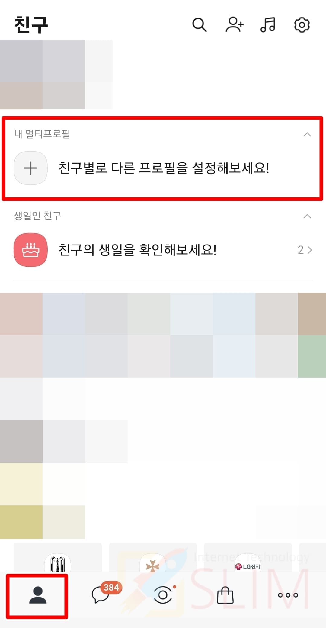1. 친구화면에 있는 나의 멀티프로필을 클릭합니다.