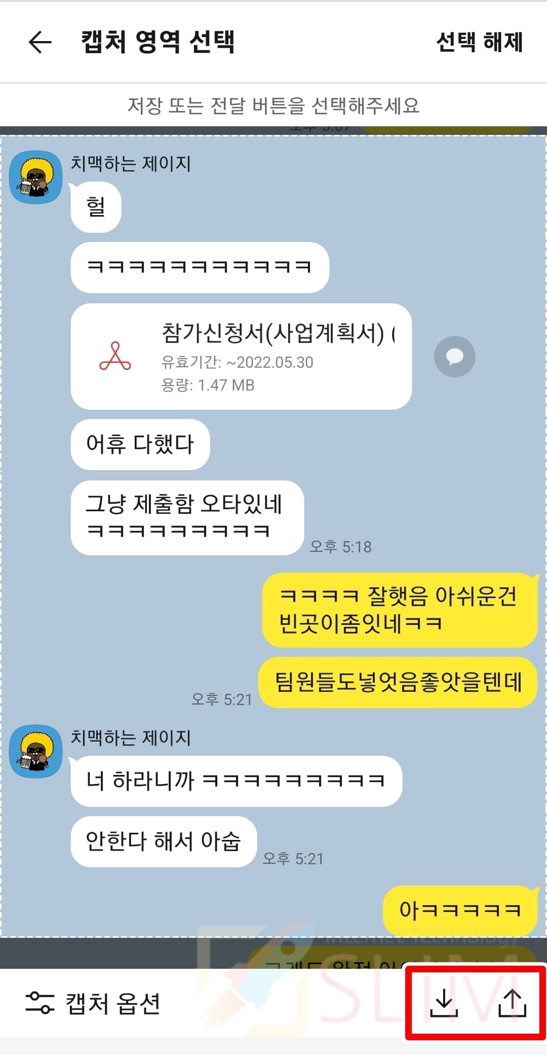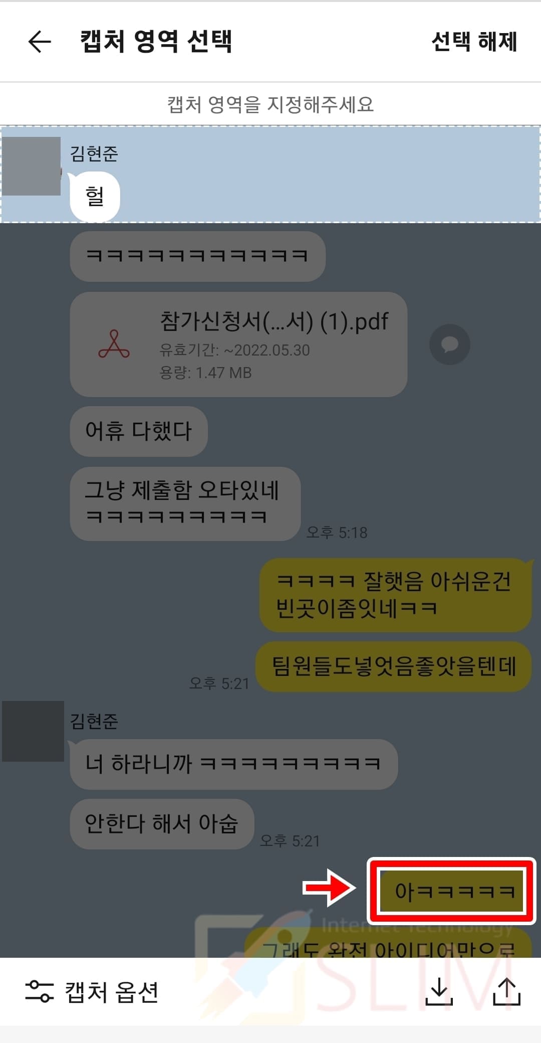 6. 캡처하고 싶은 대화 내용의 마지막 메시지를 누릅니다.