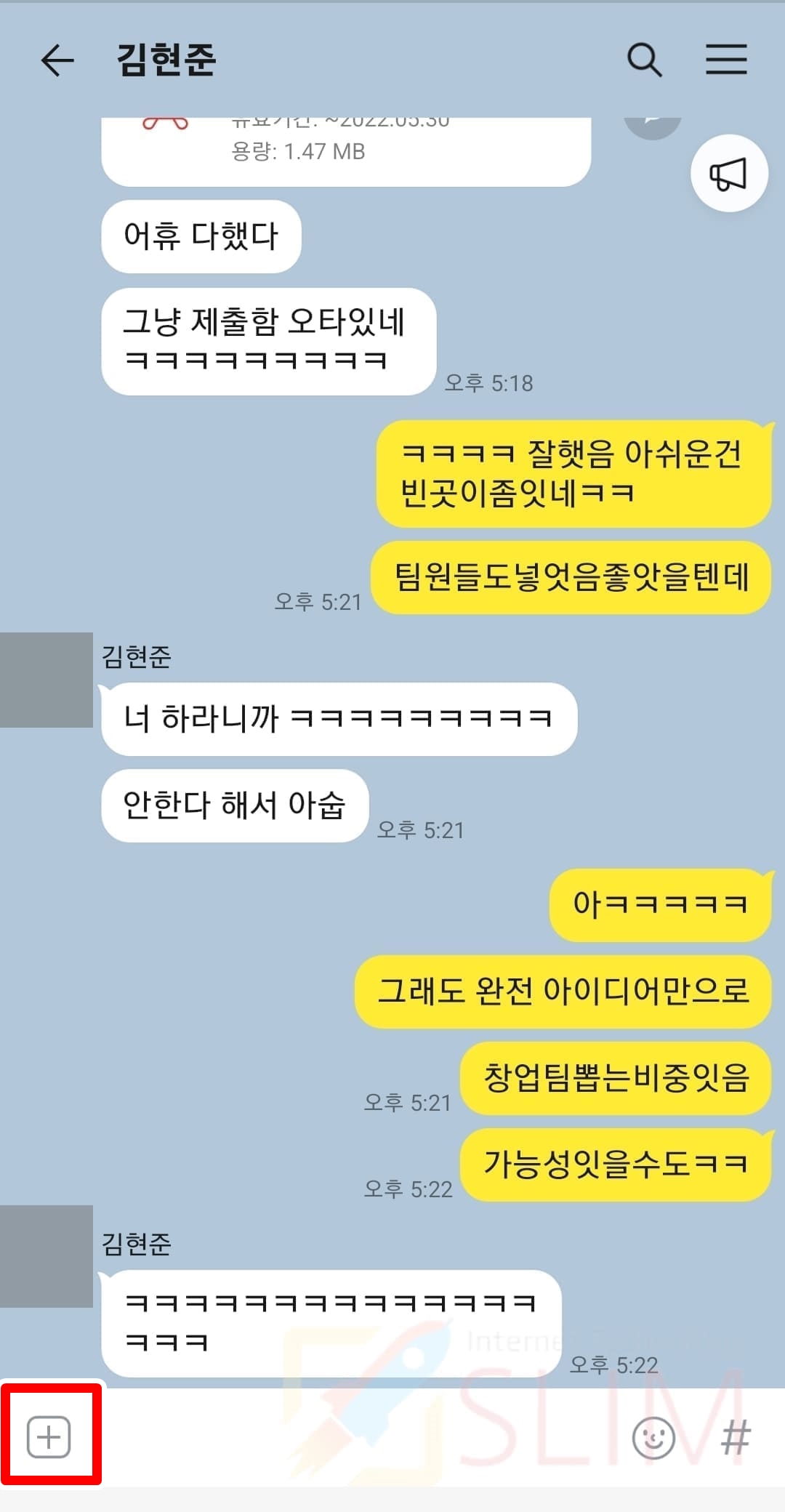 2. 채팅 입력창 좌측 +버튼을 클릭합니다.